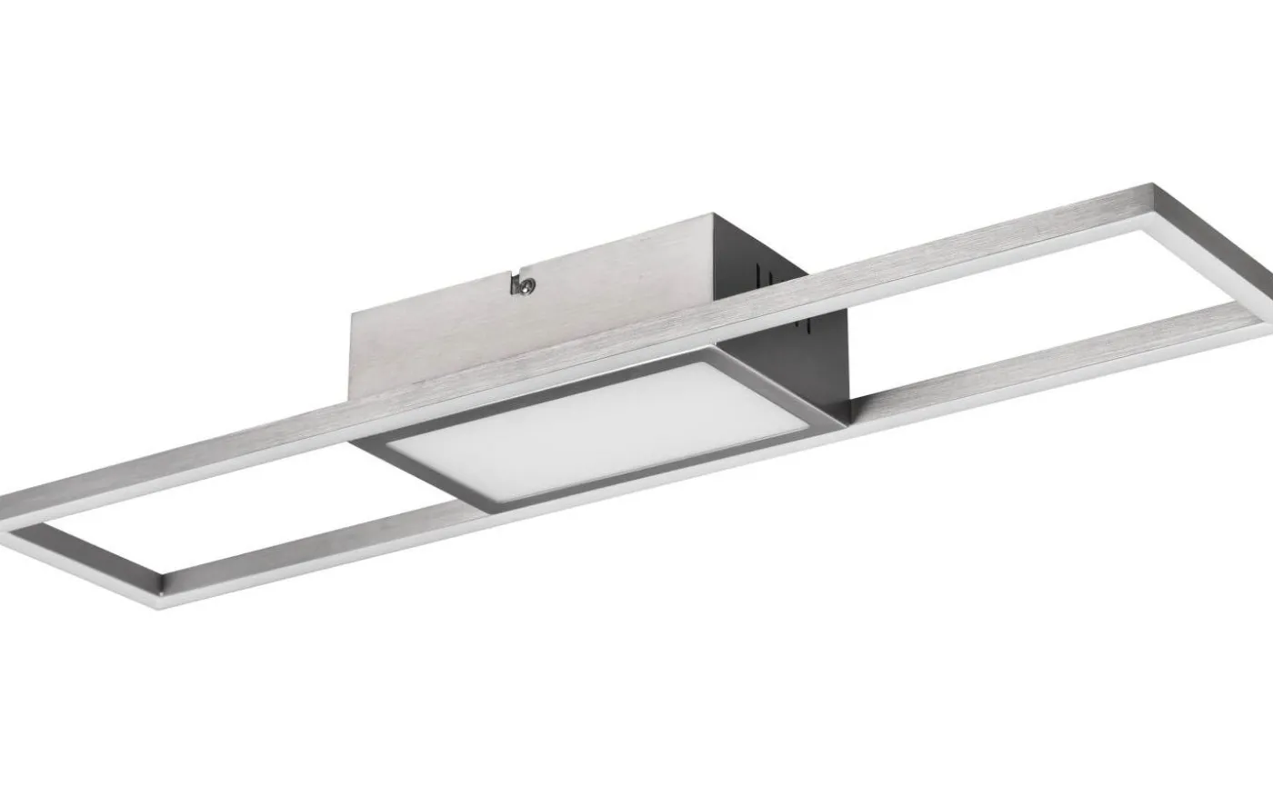 Taklampan RIGIDO övertygar med sin raka design och blir ett statement i varje tak. Den mjuka och bländfria belysningen från RIGIDO är perfekt för vardagsrummet eller för inbjudande entréer. Fjärrkontrollen som ingår i leveransen dimmar ljuset och justerar armaturens ljusfärg steglöst. Det geometriska utseendet i matt nickel är absolut modernt och elegant. Dessutom har armaturerna modern LED-teknik, vilket står för hög ljuskvalitet. LED-ljuskällor kännetecknas av lång livslängd och låg värmeutveckling. Ljuskälla: inklusive 1x SMD, 22W · 1x 2800lm, 2700 – 6000K. Extra information: Integrerad dimmer, IP20, Ljusfärg steglöst variabel, Minnesfunktion, Ej lämplig för extern dimmer, Fjärrkontroll