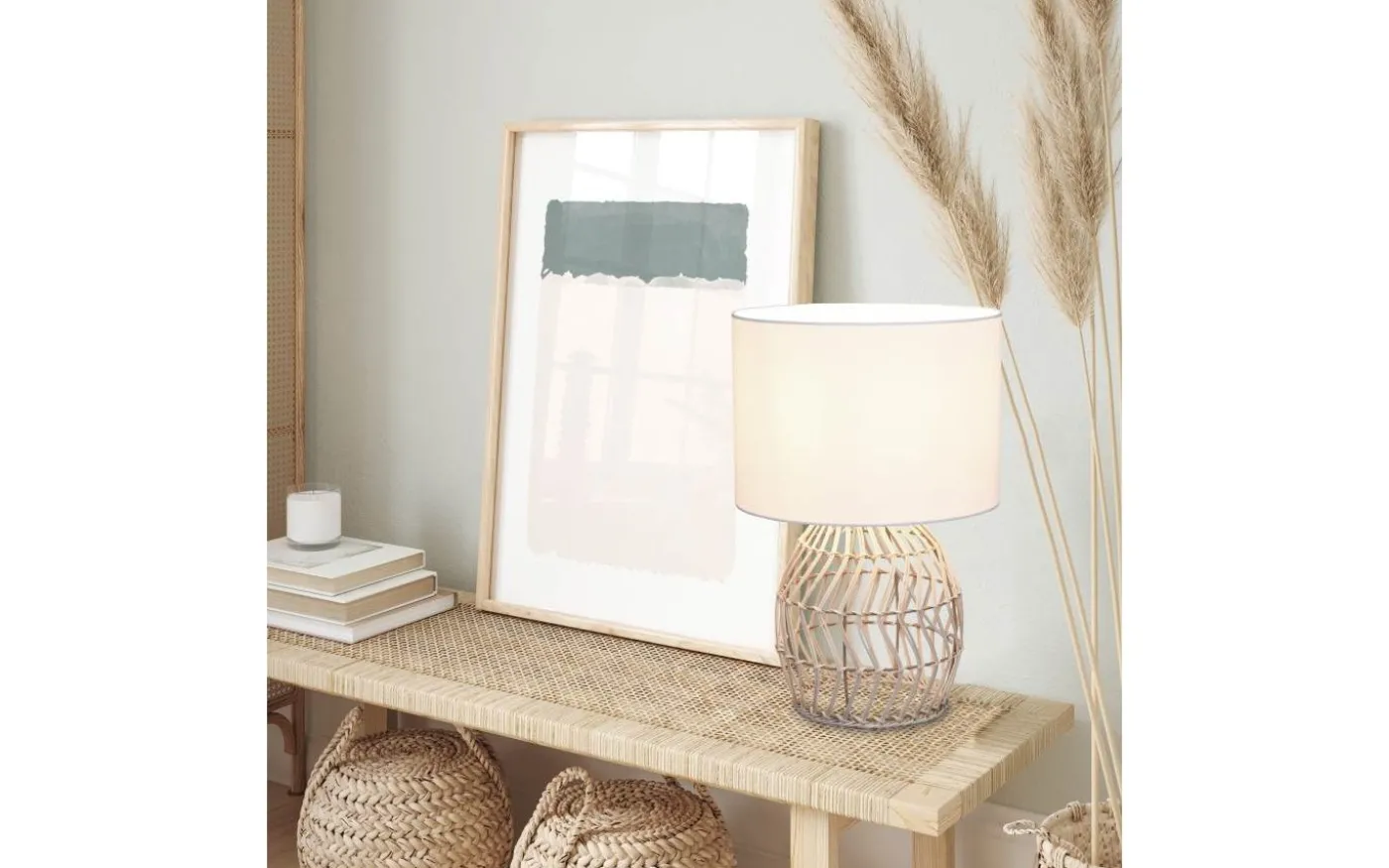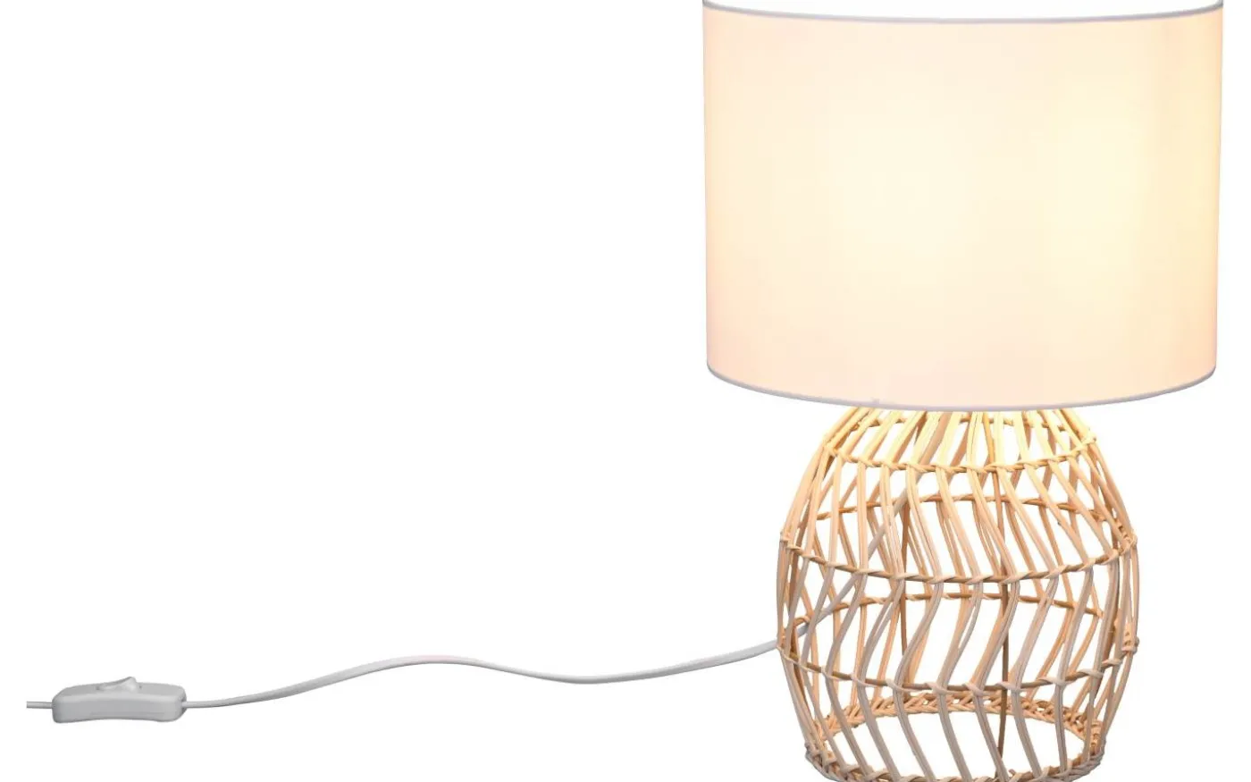Med sin kombination av olika naturmaterial återspeglar bordslampan RIKE den hippa Boho-livstrenden. Lampfoten i trendig rottingväv ger mysighet och lätthet och sätter speciella ljus- och dekorativa accenter i ditt vardagsrum. Via en sladdbrytare kan lampan bekvämt tändas och släckas på nattduksbordet eller på en byrå. Den moderna blandningen av naturlig rottingväv och den vita tygskärmen gör lampan till ett blickfång i ditt vardagsrum och smälter enkelt in i din inredningsstil. För modern och pålitlig belysning rekommenderas en LED-lampa. Den erbjuder hög ljuskvalitet, är mångsidig och övertygar med jämn belysning. Dess långa livslängd och låga värmeutveckling gör den till det perfekta valet för en mängd olika användningsområden. Ljuskälla: exklusiv 1x E27 · max. 40W. Extra information: Kabelbrytare, IP20, Lampa(or) ingår ej