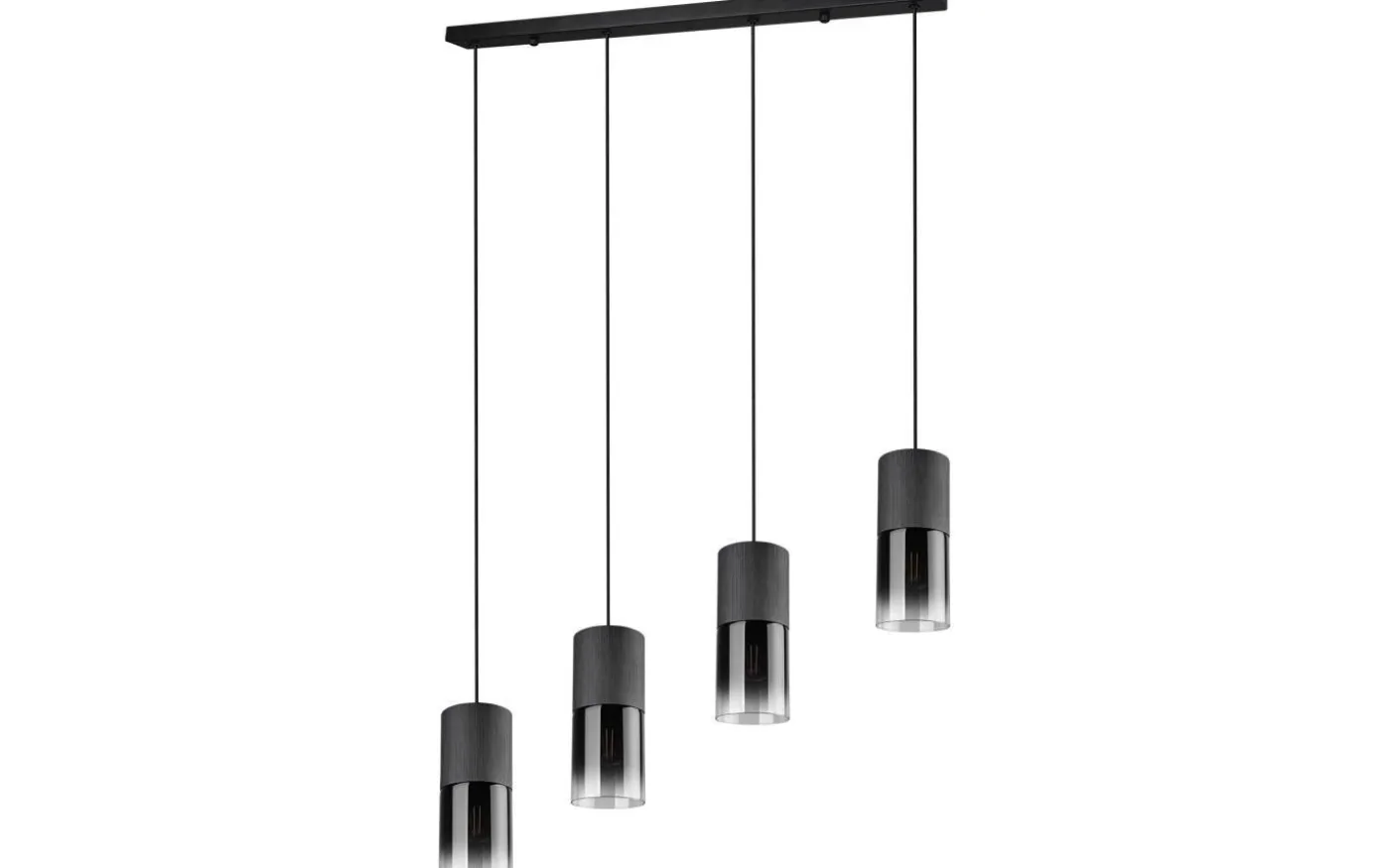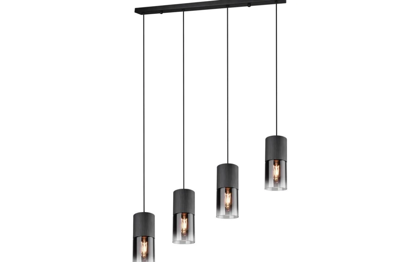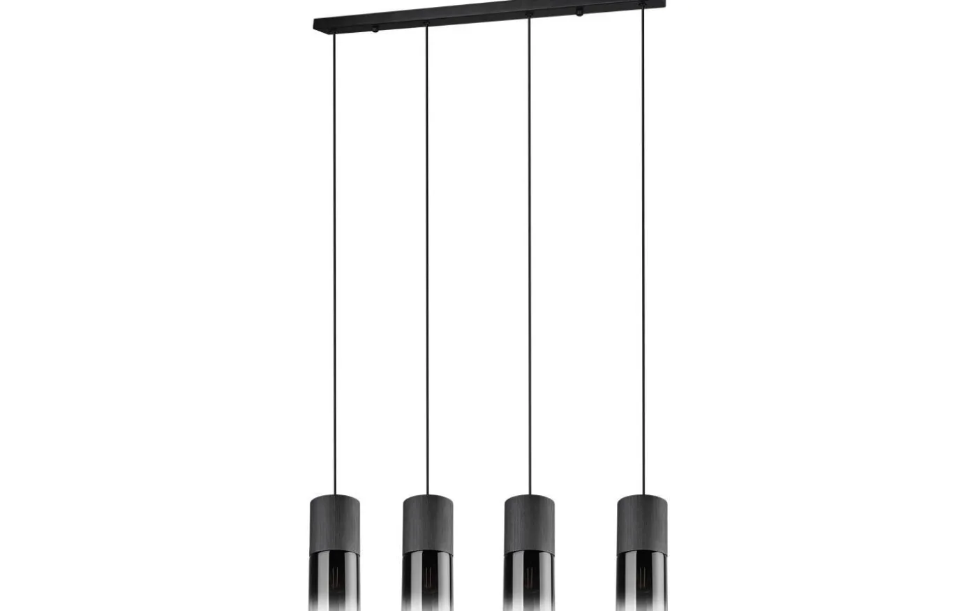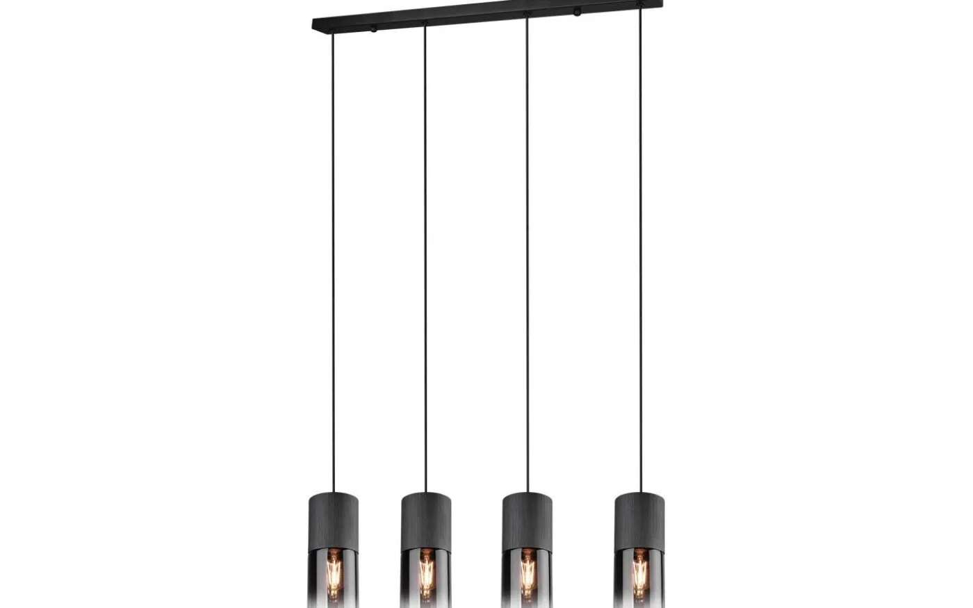 Den moderna pendellampan ROBIN är en speciell blickfångare tack vare sin eleganta glasskärm. Du kan placera lampan perfekt ovanför ditt matbord, där den kommer till sin rätt och belyser bordsytan på ett riktat sätt. Pendellampan med 4 ljuskällor har en maximal längd på 150 cm och en bredd på 80,5 cm. Tack vare den mattsvarta färgsättningen med det rökfärgade glaset kan lampan kombineras med många inredningsstilar. För modern och pålitlig belysning rekommenderas en LED-lampa. Den erbjuder hög ljuskvalitet, är mångsidig och övertygar med jämn belysning. Dess långa livslängd och låga värmeutveckling gör den till det perfekta valet för en mängd olika användningsområden. Ljuskälla: exklusiv 4x E27 · max. 28W. Extra information: Justerbar i höjd, Takmontering, IP20, Lampa(or) ingår ej
