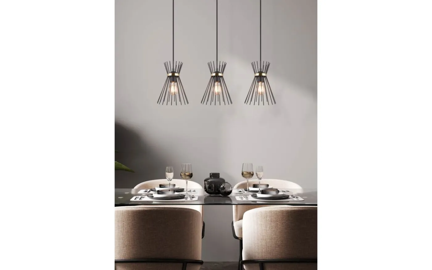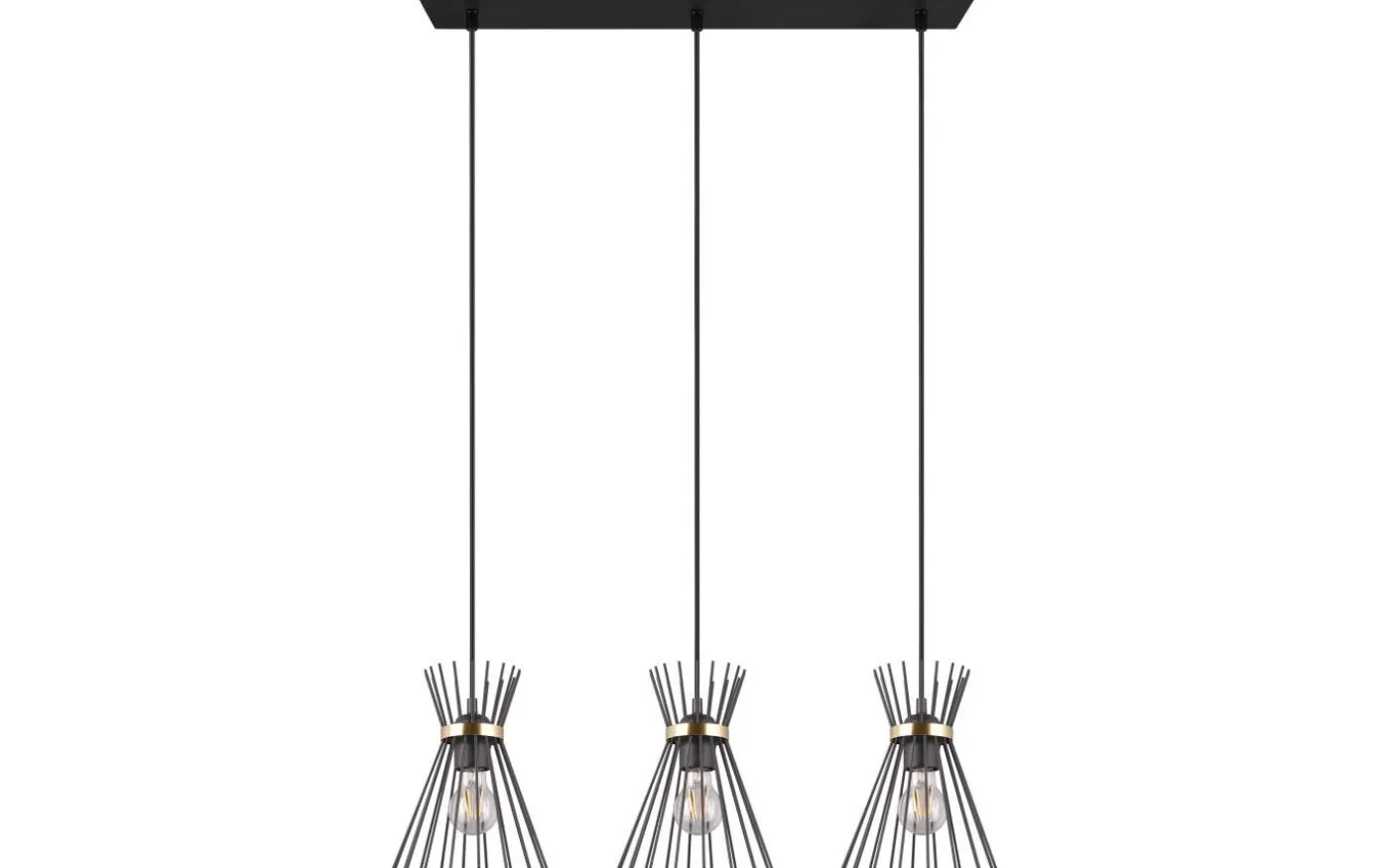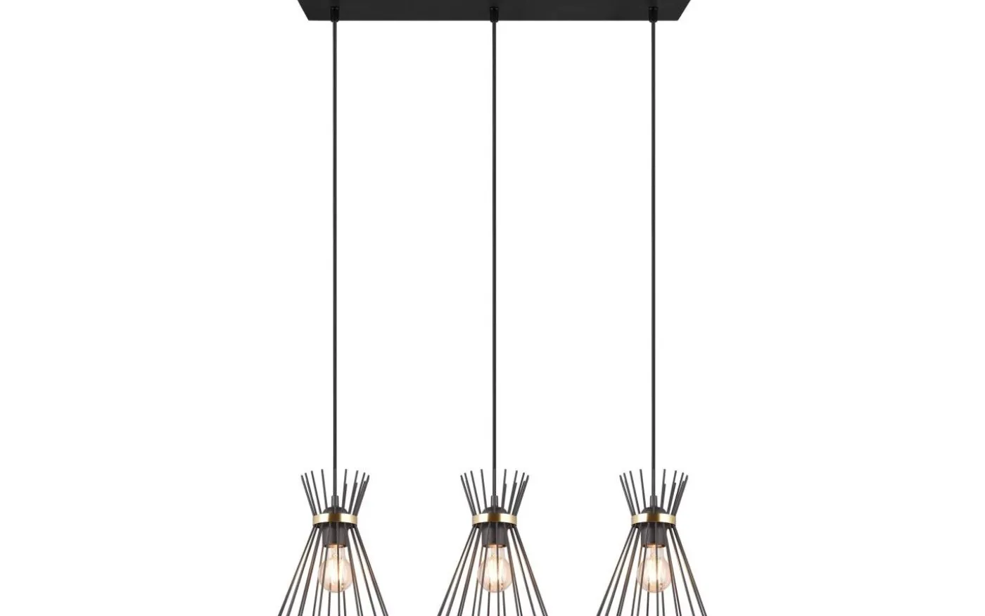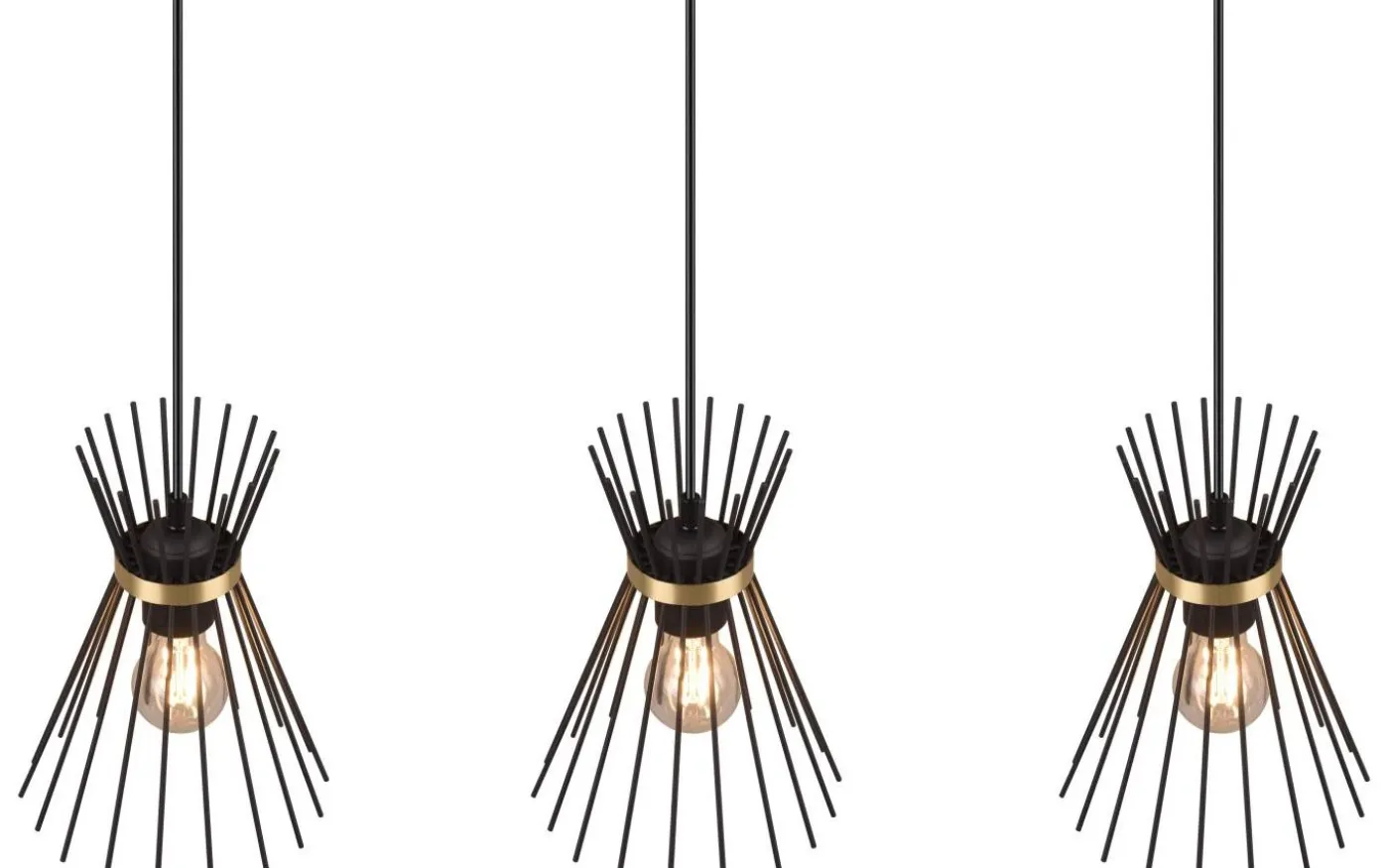 Med pendellampan ROD med tre ljuskällor träffar du mitt i prick. Den coola, iögonfallande lampan i elegant och filigran metall kan enkelt integreras i alla interiörer och framhäver utvalda områden som köksbänken eller matplatsen. Samspelet mellan ljus och skugga som skapas av den ovanliga designen utstrålar en känsla av nonchalans och lätthet med en välbefinnande karaktär. Den filigran-puristiska designen i svart och guld blir ett blickfång med en cool faktor i ditt hem. För modern och pålitlig belysning rekommenderas en LED-lampa. Den erbjuder hög ljuskvalitet, är mångsidig och övertygar med jämn belysning. Dess långa livslängd och låga värmeutveckling gör den till det perfekta valet för en mängd olika användningsområden. Ljuskälla: exklusiv 3x E27 · max. 40W. Extra information: Justerbar i höjd, IP20, Lampa(or) ingår ej
