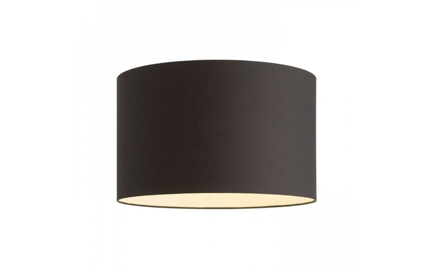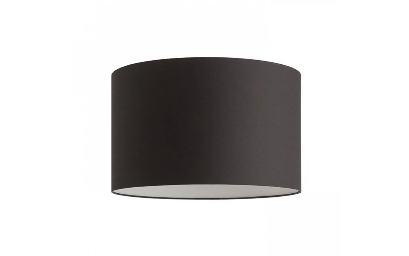 Ron takskärm från Rendl är en cylinderformad takskärm i svart polycotton med vit insida av PVC. Takskärmen har ett E27-ringfäste.