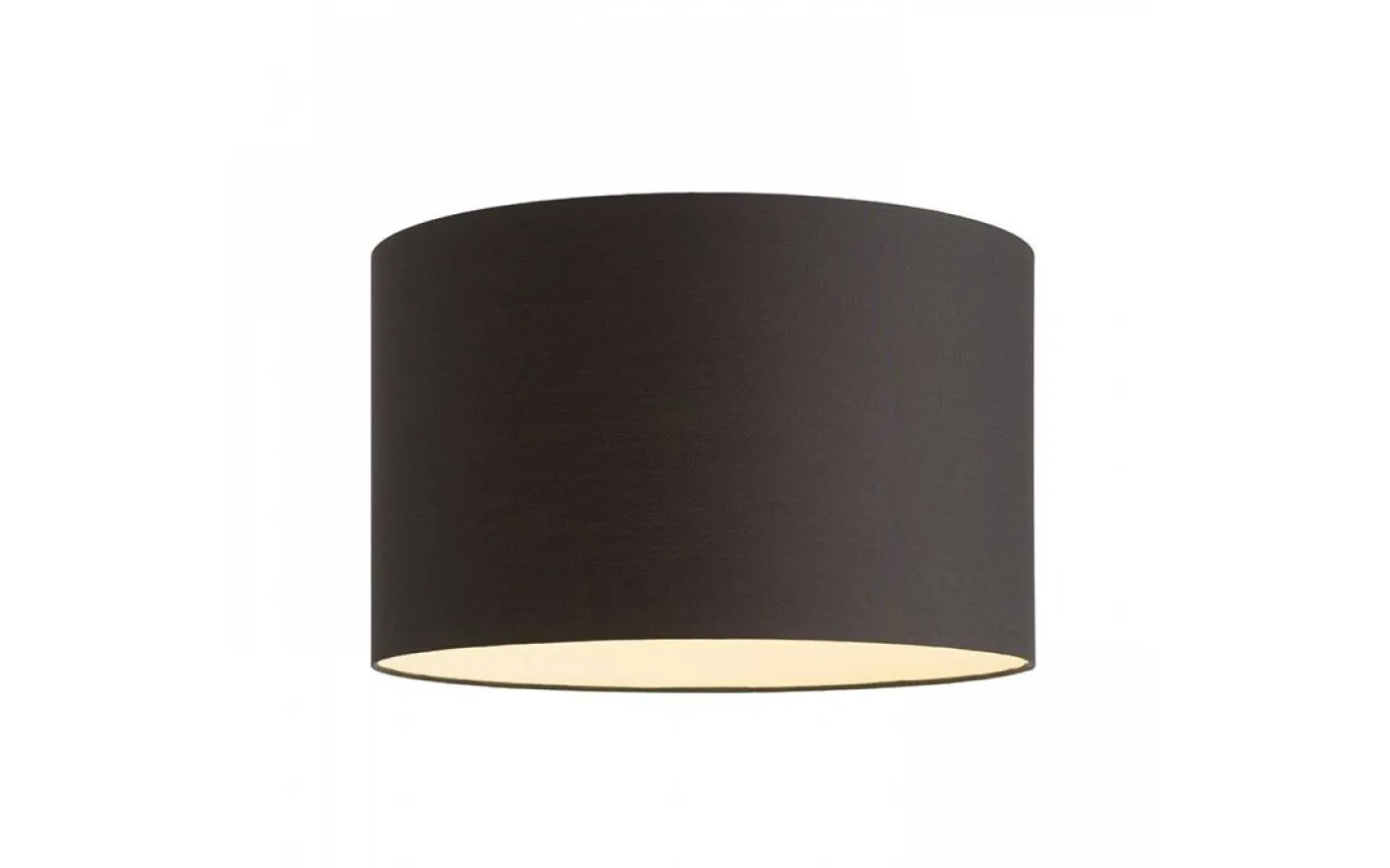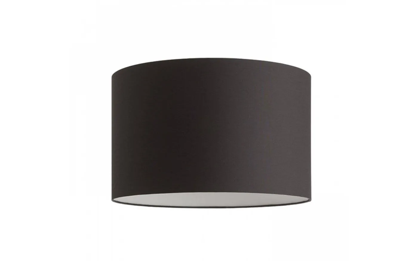Ron takskärm från Rendl är en cylinderformad takskärm i svart polycotton med vit insida av PVC. Takskärmen har ett E27-ringfäste.