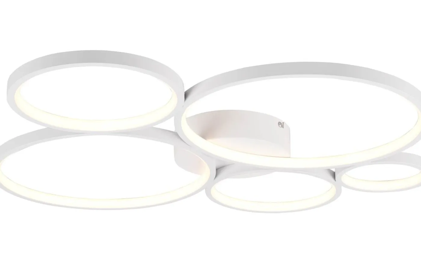 Med sina fem upphängningsringar i olika diametrar är taklampan RONDO en riktig blickfångare. Taklampan har en integrerad SWITCH-dimmer som styrs via ljusströmbrytaren. Detta gör att ljusstyrkan på de LED-lampor som är installerade i varje cirkel kan styras i tre steg med hjälp av ljusströmbrytaren. Taklampan är ett verkligt dekorativt element och förhöjer stilfullt alla bostadsutrymmen. Tack vare den mattvita färgsättningen kan lampan kombineras med många inredningsstilar. För modern och pålitlig belysning rekommenderas en LED-lampa. Den erbjuder hög ljuskvalitet, är mångsidig och övertygar med jämn belysning. Dess långa livslängd och låga värmeutveckling gör den till det perfekta valet för en mängd olika tillämpningar. Ljuskälla: inklusive 1x SMD LED, 49W · 1x 5800lm, 3000K. Extra information: Takmontering, IP20, Ej dimbar, Dimbar via strömbrytare, Väggmontering