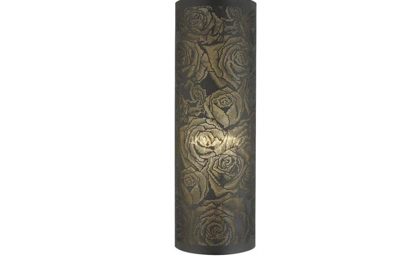 Ros bordslampa från Oriva är en vacker bordslampa i metall med mönster av roser som vacker lyser igenom när lampan är tänd.