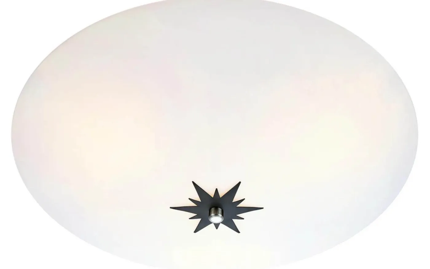 Rose plafond från Markslöjd är en härlig och tuff plafond i opal vitt glas med svart detalj av stjärnform i mitten av kupan. Plafonden är för sedd med 3st E14 socklar, se förslag på passande ljuskällor under ”Tillbehör”
