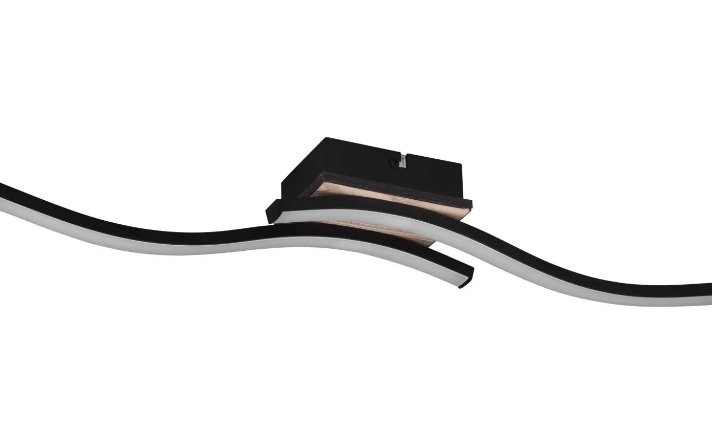 Taklampan ROUTE övertygar med sin moderna och elegant böjda design. Rätt placerad blir armaturen ett riktigt blickfång och förhöjer varje vardagsrum elegant. Taklampan ROUTE med två lampor avger ett mjukt, varmvitt ljus och är idealisk för att lysa upp vardagsrum eller sovrum. Färgkombinationen av matt svart och trälook uppfyller moderna inredningskoncept och kan enkelt integreras. Dessutom använder armaturerna modern LED-teknik, vilket står för hög ljuskvalitet. LED-ljuskällor kännetecknas av lång livslängd och låg värmeutveckling. Ljuskälla: inklusive 2x SMD LED, 5W · 2x 500lm, 3000K. Extra information: Takmontering, IP20, Ej dimbar