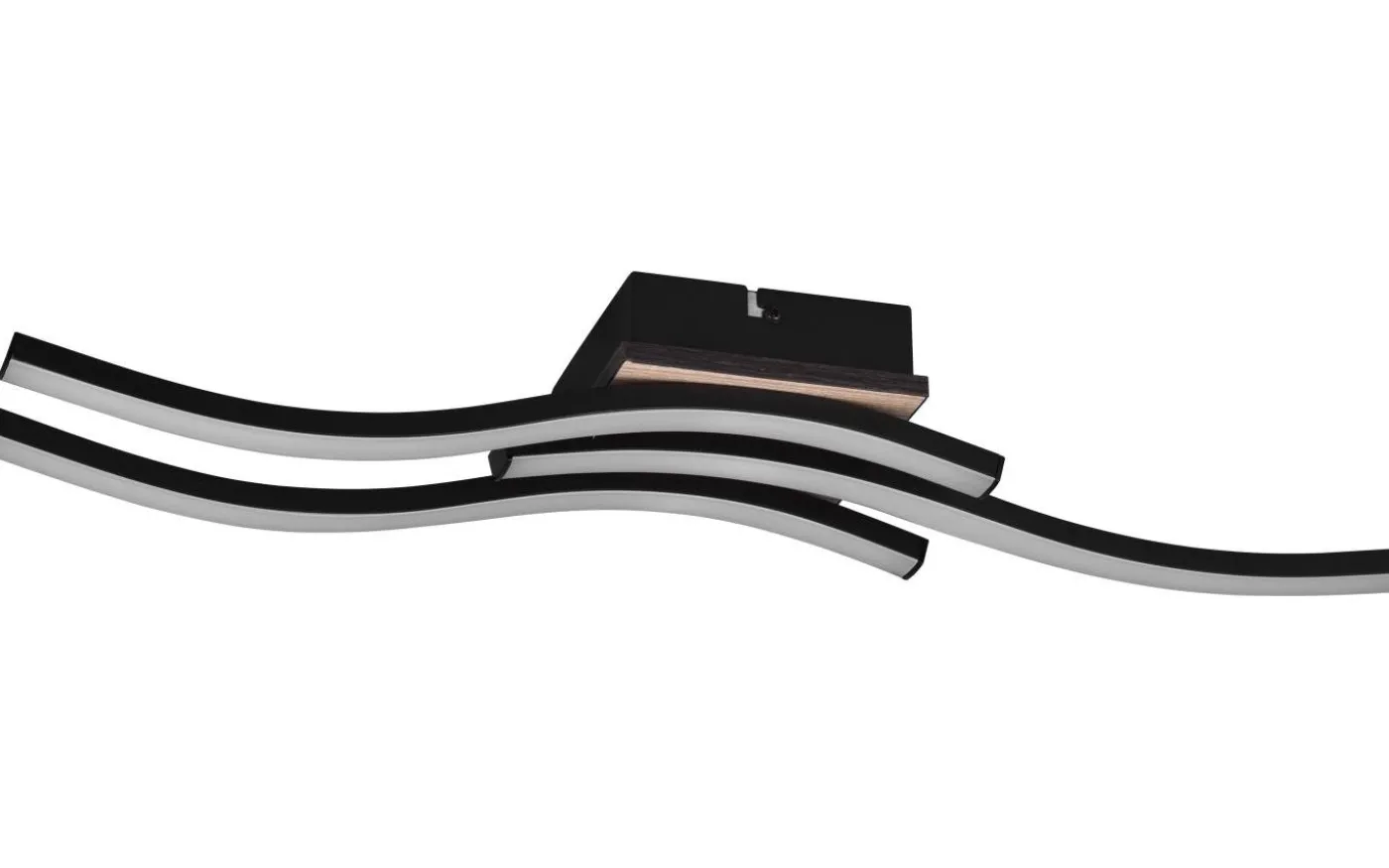 Taklampan ROUTE övertygar med sin moderna och elegant böjda design. Rätt placerad blir armaturen ett verkligt blickfång och förhöjer varje vardagsrum elegant. Taklampan ROUTE med tre lampor avger ett mjukt, varmvitt ljus och är idealisk för att lysa upp vardagsrum eller sovrum. Färgkombinationen av matt svart och trälook uppfyller moderna inredningskoncept och kan enkelt integreras. Dessutom använder armaturerna modern LED-teknik, vilket står för hög ljuskvalitet. LED-ljuskällor kännetecknas av lång livslängd och låg värmeutveckling. Ljuskälla: inklusive 3x SMD LED, 5W · 3x 500lm, 3000K. Extra information: Takmontering, IP20, Ej dimbar