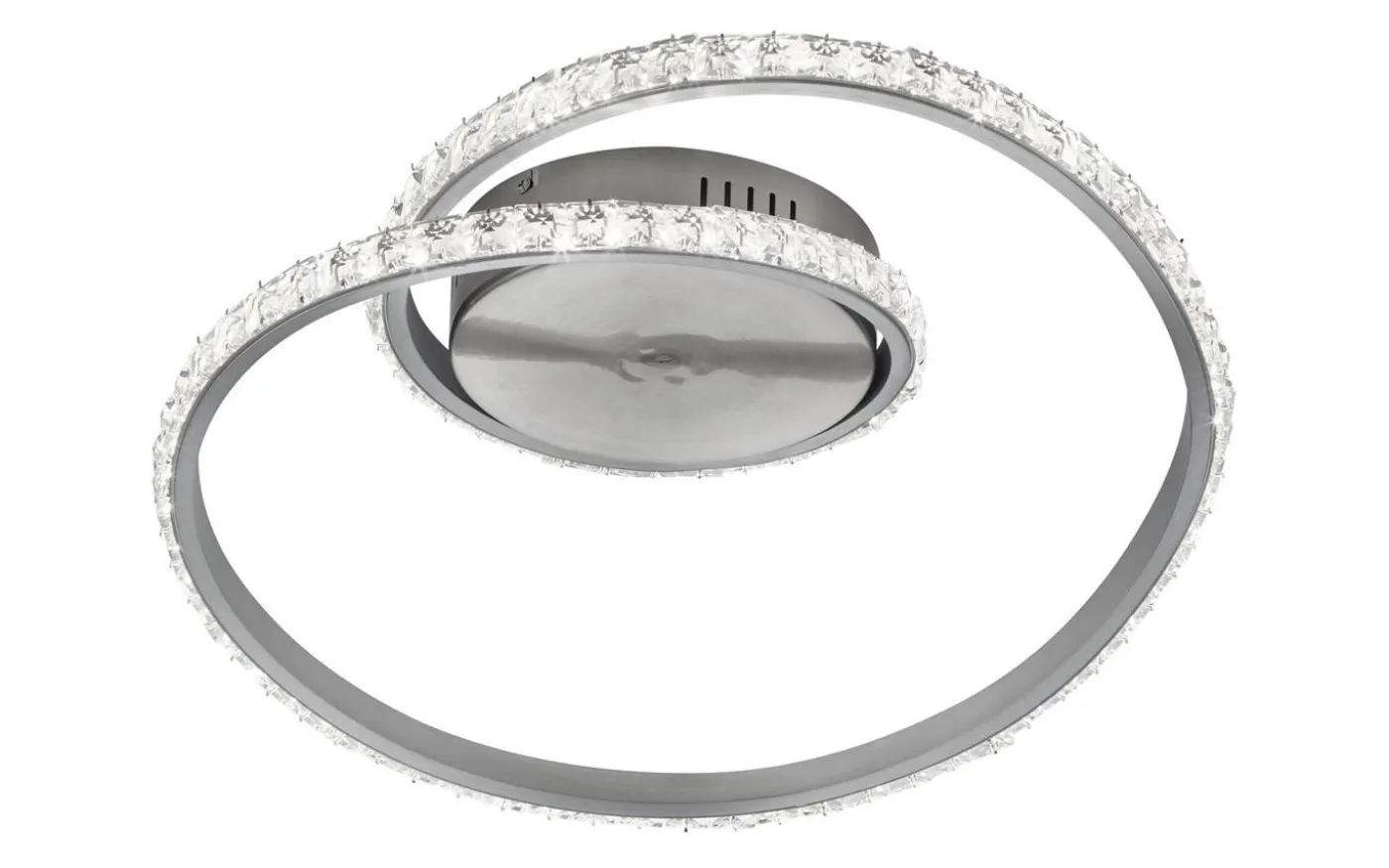 RUBIN ger definitivt färgen en boost. Med den integrerade RGBW-färgväxlaren kan ett brett utbud av färger väljas med en fjärrkontroll. Taklampan har även en nattlampsfunktion och ljusstyrkan kan dimmas steglöst så att den kan justeras individuellt beroende på ljusförhållandena. Den ovanliga designen med kristallkåpa skapar också ett effektivt blickfång i ditt vardagsrum. Den moderna taklampan har en höjd på 18 cm och en diameter på 45 cm. Kromfärgsättningen och kristallkåpan skapar en elegant kontrast till ljusfärgerna och avrundar helhetsbilden perfekt. Dessutom har armaturerna modern LED-teknik, vilket står för hög ljuskvalitet. LED-ljuskällor kännetecknas av lång livslängd och låg värmeutveckling. Ljuskälla: inklusive 1x SMD LED, 19W · 1x 2100lm, 3000K. Extra information: Takmontering, Integrerad dimmer, IP20, Nattlampa, Ej lämplig för extern dimmer, Fjärrkontroll, RGBW-färgväxlande, Väggmontering