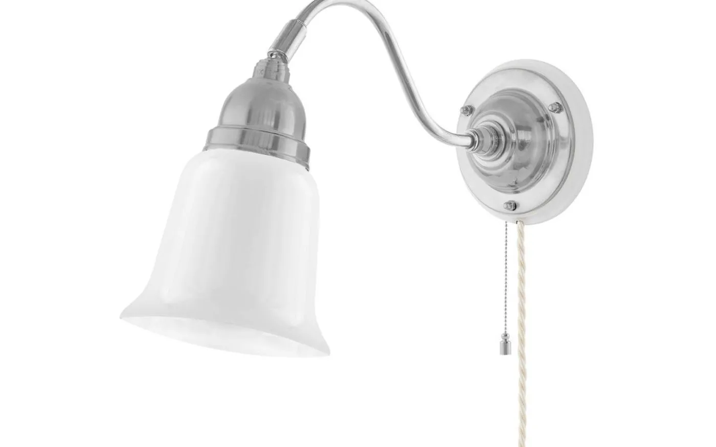 Klassisk väggarmatur som med sin relativt långa arm och riktbara lamphållare ofta placeras en bit upp på väggen istället för takbelysning i exempelvis korridorer eller kök. För fast montage. Kan kompletteras med knoppledning och stickkontakt för vanligt vägguttag.