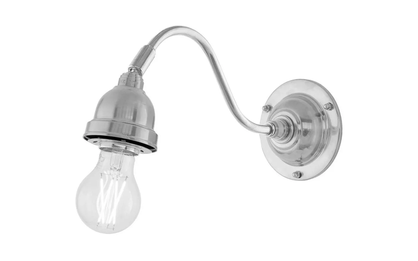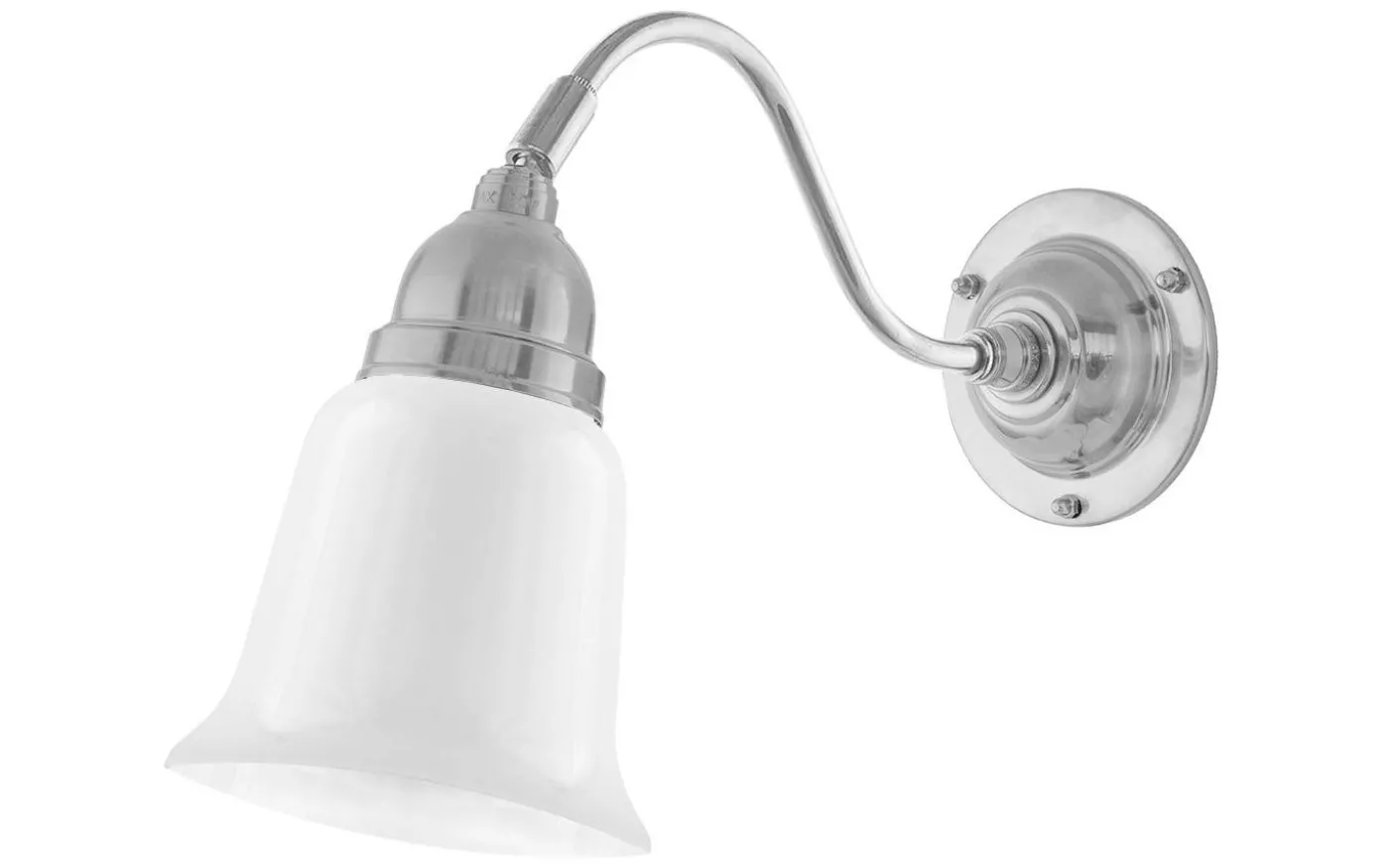 Klassisk väggarmatur som med sin relativt långa arm och riktbara lamphållare ofta placeras en bit upp på väggen istället för takbelysning i exempelvis korridorer eller kök. För fast montage. För att gå in med kuloledning kompletteras med en distansplatta.