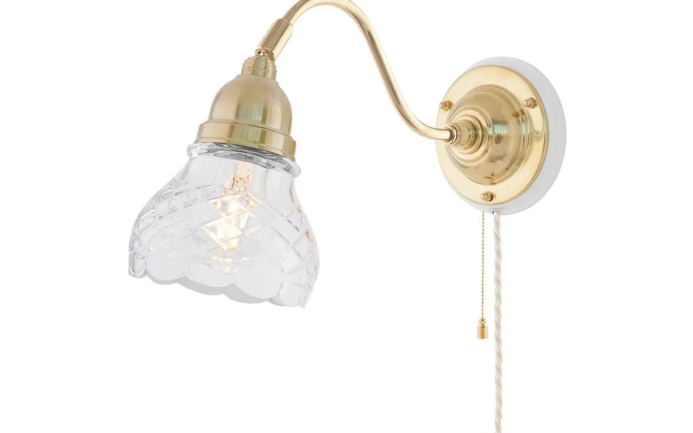 Klassisk väggarmatur som med sin relativt långa arm och riktbara lamphållare ofta placeras en bit upp på väggen istället för takbelysning i exempelvis korridorer eller kök. För fast montage. Kan kompletteras med knoppledning och stickkontakt för vanligt vägguttag.