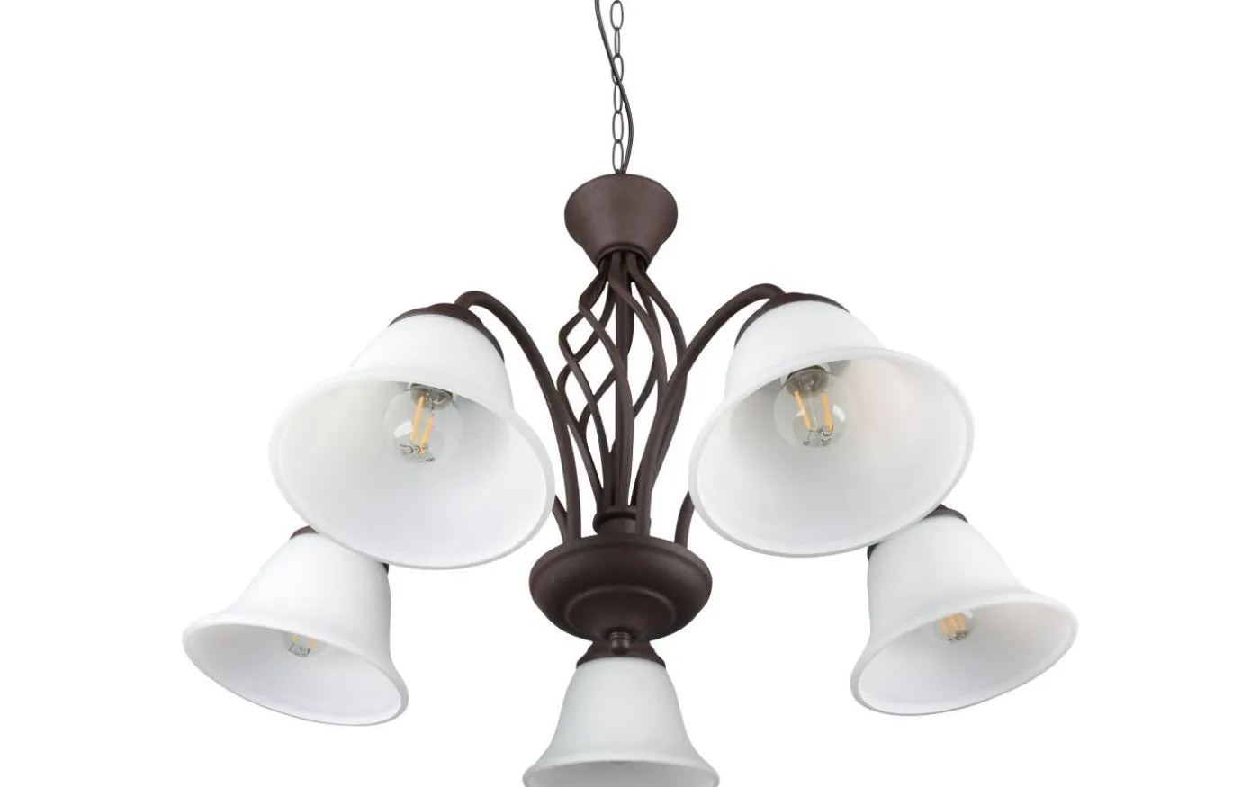 RUSTICA-serien gör ett uttalande i lantlig stil! Rustika metallelement möter stilfullt böjda glasskärmar, som tillsammans skapar en speciell atmosfär. Den behagliga rostfärgade färgen understryker armaturens rustika design, som företrädesvis återfinns i klassiska inredningsstilar eller ger en spännande stilförändring i moderna boendekoncept. För modern och pålitlig belysning rekommenderas en LED-lampa. Den erbjuder hög ljuskvalitet, är mångsidig och övertygar med jämn belysning. Dess långa livslängd och låga värmeutveckling gör den till det perfekta valet för en mängd olika användningsområden. Ljuskälla: exklusiv 5x E14 · max. 40W. Extra information: Takmontering, IP20, Lampa(or) ingår ej