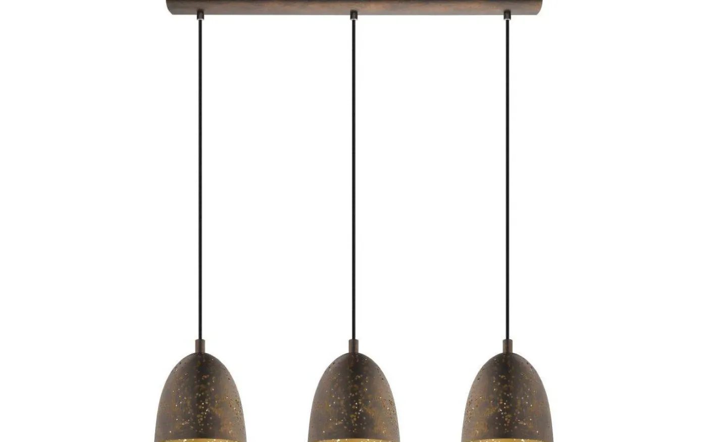 Safi taklampa från Eglo är en stilfull taklampa av stål i brun finish. Taklampans tre nedpendlade lampskärmar har en guldfärgad insida som skapar ett härligt och behagligt ljussken.