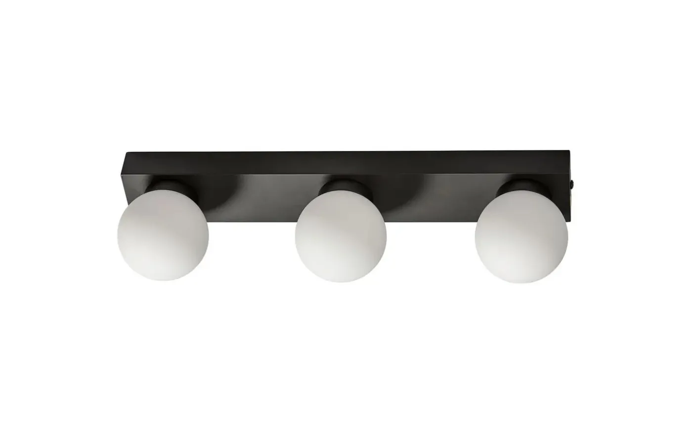 Sandhamn är en stilren och modern vägglampa med tre runda opalglaskupor som ger ett mjukt och behagligt ljus – perfekt för placering ovanför spegeln i badrum eller tvättstuga. Den svarta armaturen skapar en elegant kontrast mot det matta opalglaset och passar utmärkt i både moderna och klassiska badrumsmiljöer.