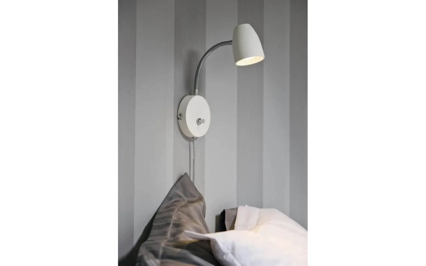 Sandnes är den optimala sänglampan som är enkel att justera i både rikting med flexled och ljusstyrka med sin dimmer. Sandnes kommer i mattvit metall med detaljer i krom och sladdlängden är 240 cm. Ljuskälla GU10 max 6W ingår ej.