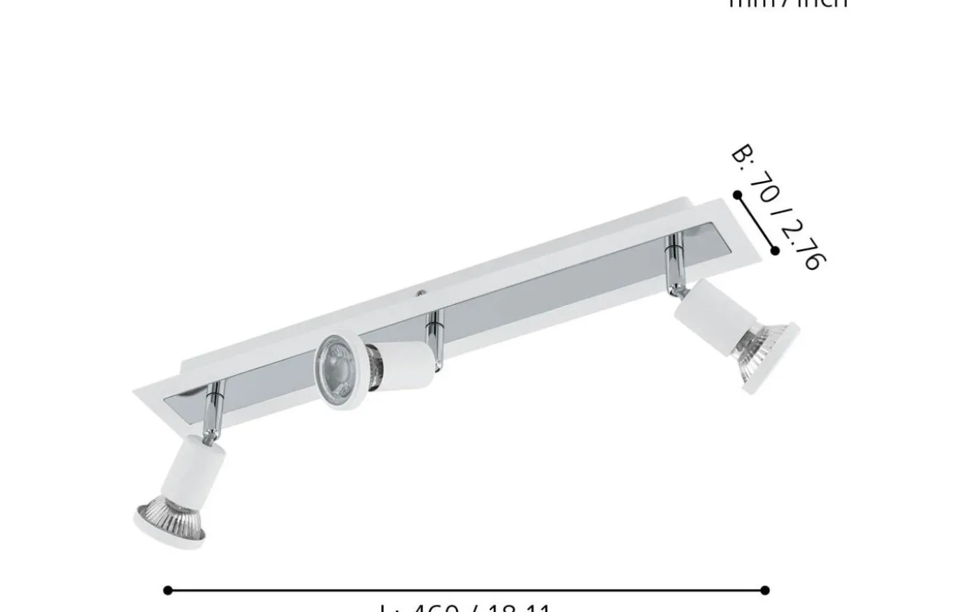 SARRIA LED-taklampan har en rektangulär kropp i vit metall och tre justerbara spotlights i vit metall. Lampan har även kromfärgade metalldetaljer, som perfekt kompletterar den minimalistiska designen. De vridbara strålkastarna låter dig justera ljuset för att accentuera enskilda delar av rummet, oavsett om det är i köket, vardagsrummet, sovrummet eller hallen. Produkten innehåller GU10 LED-glödlampor, som ger ett behagligt varmvitt ljus.