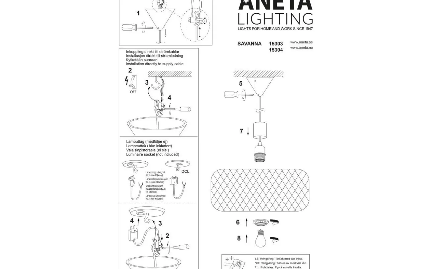 Savanna taklampa från Aneta är tillverkad i flätad rotting som ger ett varmt och inbjudande ljus till rummet. Ljuskälla och takkontakt köpes separat, se passande förslag under tillbehör.