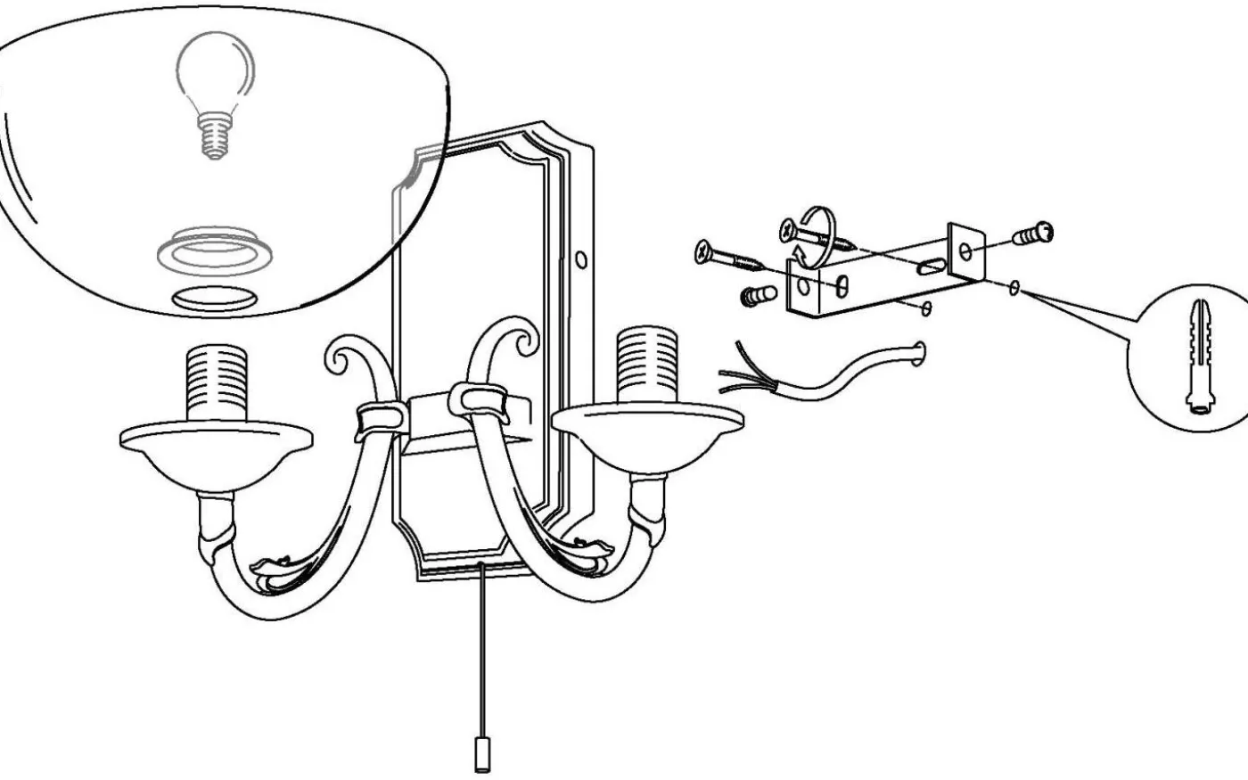 Vägglampan behöver två E14-lampor. Ingår ej.