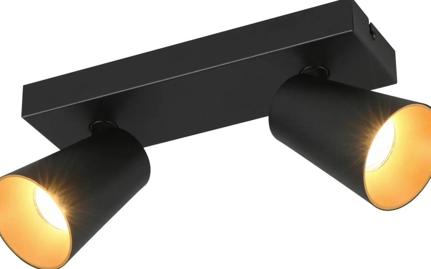 Lamporna i SHARP-serien kännetecknas av sin moderna design och mångsidighet. Tack vare de vridbara spotlighterna är tak- och vägglampan med två ljuskällor idealisk som en kompletterande ljuskälla i köket eller i små rum och ger ditt hem en mysig atmosfär. Armaturens eleganta mattsvarta färg ger rummet en sofistikerad touch. De utbytbara skydden i svart och guld erbjuder också ett flexibelt samspel med ljuset. För modern och pålitlig belysning rekommenderas användning av en LED-lampa. Den erbjuder hög ljuskvalitet, är mångsidig och övertygar med jämn belysning. Dess långa livslängd och låga värmeutveckling gör den till det perfekta valet för en mängd olika tillämpningar. Ljuskälla: exklusiv 2x GU10 · max. 10W. Extra information: IP20, Lampa(or) ingår ej, Väggmontering