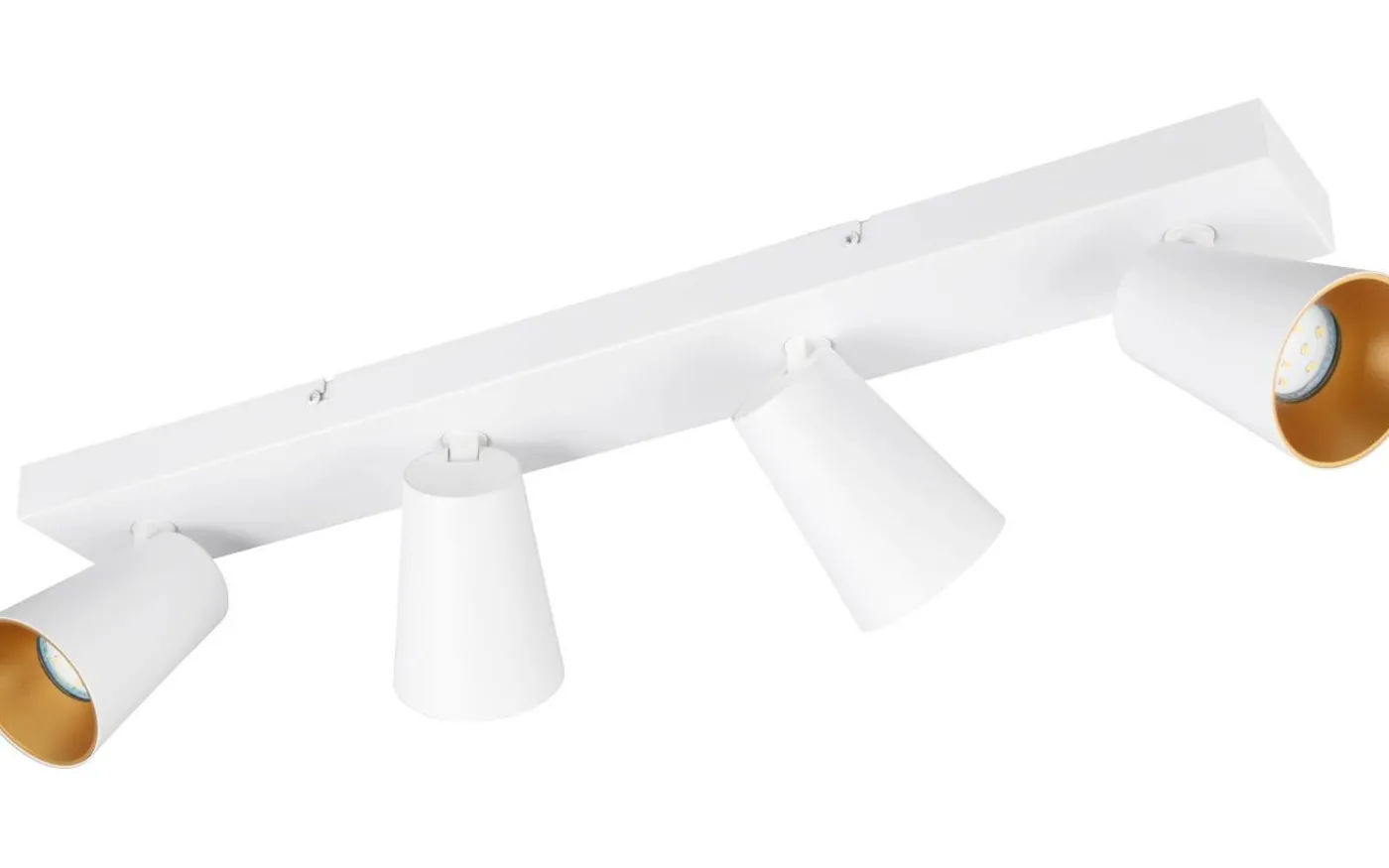 Lamporna i SHARP-serien kännetecknas av sin moderna design och mångsidighet. Tack vare de vridbara spotlighterna är tak- och vägglampan med fyra ljuskällor idealisk som en kompletterande ljuskälla i köket eller i små rum och ger ditt hem en mysig atmosfär. Armaturens eleganta mattvita färg ger rummet en ljus och luftig känsla. De utbytbara skydden i vitt och guld erbjuder också ett flexibelt samspel med ljuset. För modern och pålitlig belysning rekommenderas användning av en LED-lampa. Den erbjuder hög ljuskvalitet, är mångsidig och övertygar med jämn belysning. Dess långa livslängd och låga värmeutveckling gör den till det perfekta valet för en mängd olika tillämpningar. Ljuskälla: exklusiv 4x GU10 · max. 10W. Extra information: Takmontering, IP20, Lampa(or) ingår ej