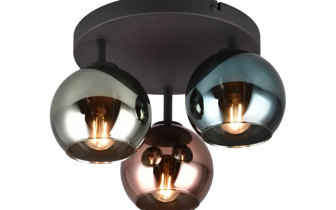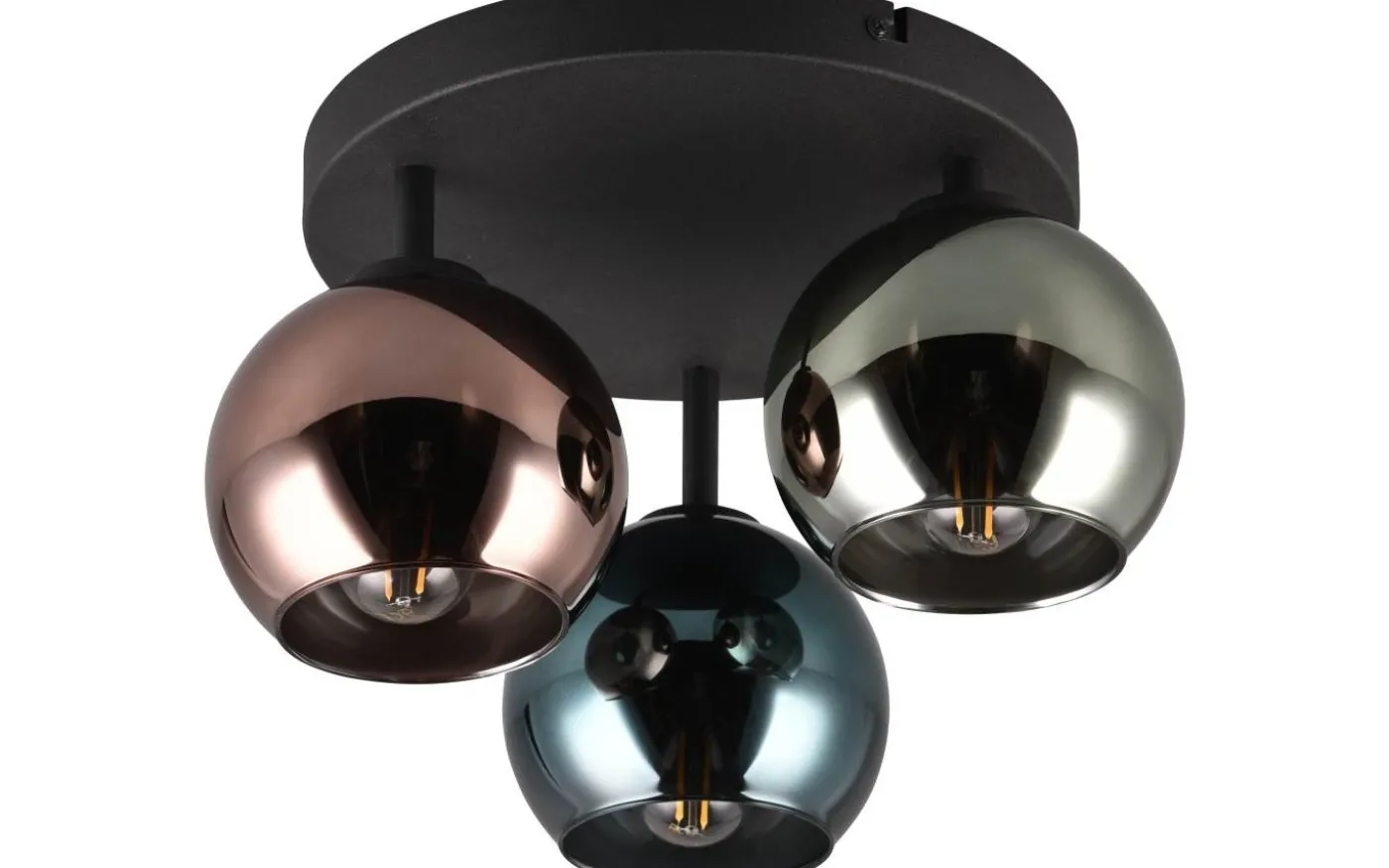 Den eleganta taklampan SHELDON imponerar med sina organiska former och färgglada glas med spegeleffekt. De tre skimrande glasskärmarna skapar en magisk atmosfär med ett spännande ljusspel och blir ett dekorativt element med wow-effekt. Förhöj ditt sovrum eller vardagsrum elegant och skickligt med SHELDON! Kombinationen av svart matt metall och rödaktiga, blåaktiga och grönaktiga glasskärmar tar armaturens stilfaktor till en helt ny nivå. För modern och pålitlig belysning rekommenderas en LED-lampa. Den erbjuder hög ljuskvalitet, är mångsidig och övertygar med jämn belysning. Dess långa livslängd och låga värmeutveckling gör den till det perfekta valet för en mängd olika användningsområden. Ljuskälla: exklusiv 3x E14 · max. 10W. Extra information: Takmontering, IP20, Lampa(or) ingår ej
