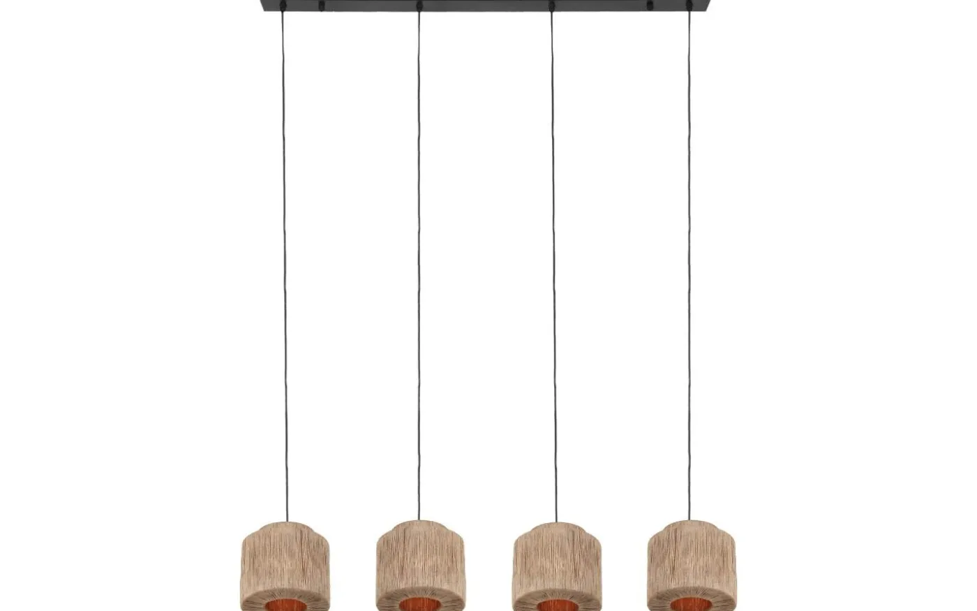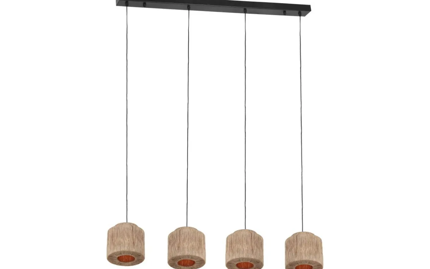 Pendellampan SMILLA kombinerar bohemisk stil med en touch av natur och ger ditt hem lätthet och mysighet. Dess unika lampskärmar av naturlig jute skapar ett fascinerande samspel mellan ljus och skugga som ger ditt rum en speciell atmosfär. Samspelet mellan naturlig jute och svart matt metall skapar en harmonisk balans mellan rustik charm och modern design. För modern och pålitlig belysning rekommenderas en LED-lampa. Den erbjuder hög ljuskvalitet, är mångsidig och övertygar med jämn belysning. Dess långa livslängd och låga värmeutveckling gör den till det perfekta valet för en mängd olika användningsområden. Ljuskälla: exklusiv 4x E27 · max. 10W. Extra information: Justerbar i höjd, Takmontering, IP20, Lampa(or) ingår ej