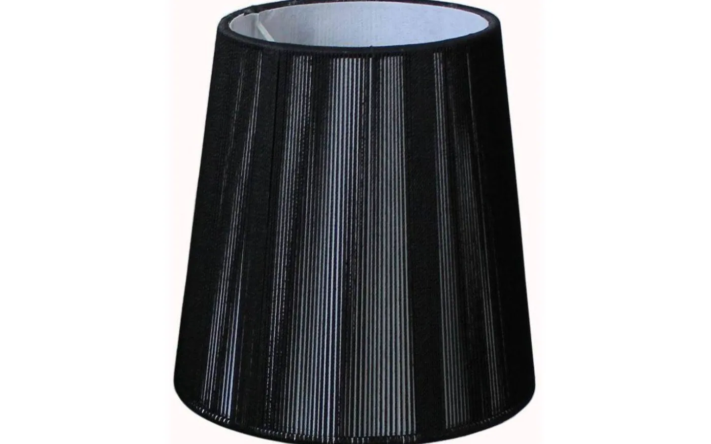 Snöre lampskärm från Oriva är i bomull med snörat mönster. Lampskärmen har klofäste som fäst på en klotformad ljuskälla.