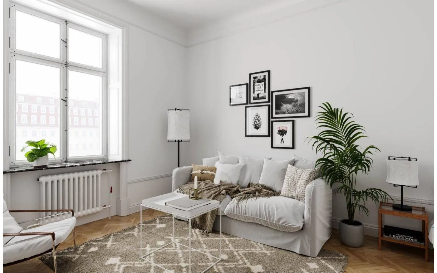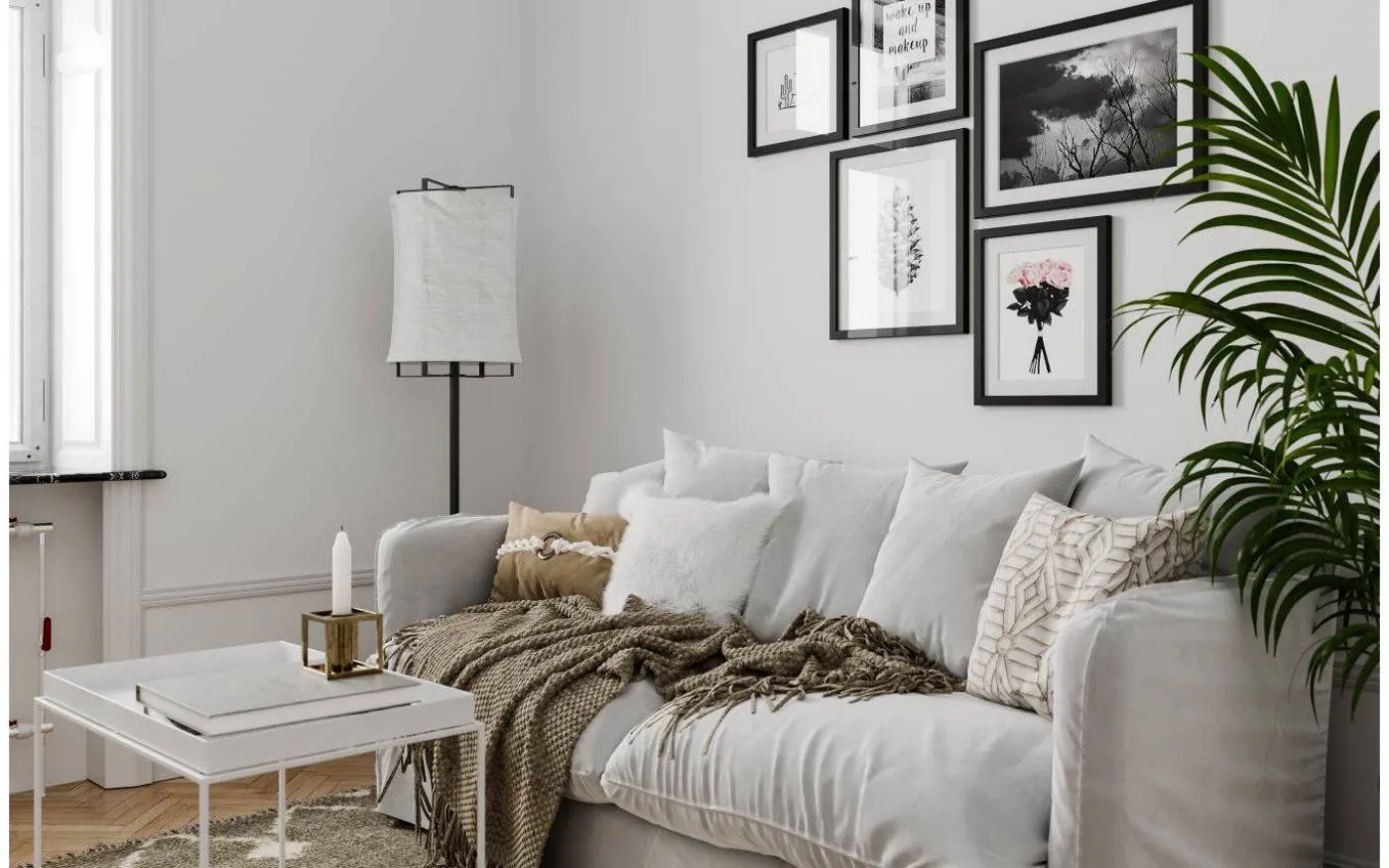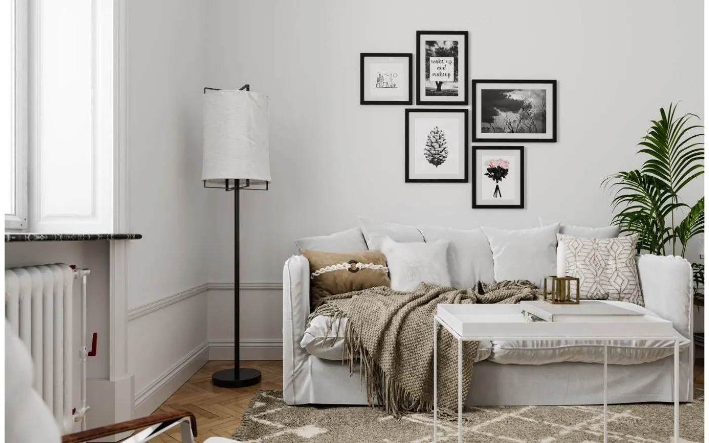 Softy golvlampa från By Rydéns skapar ett harmoniskt ljussken som stärker mysfaktorn oavsett var denna placeras. Det ljusa linnetyget runt lampan ger en trendsäker kontrast mot den omgivande mattsvarta metallen.