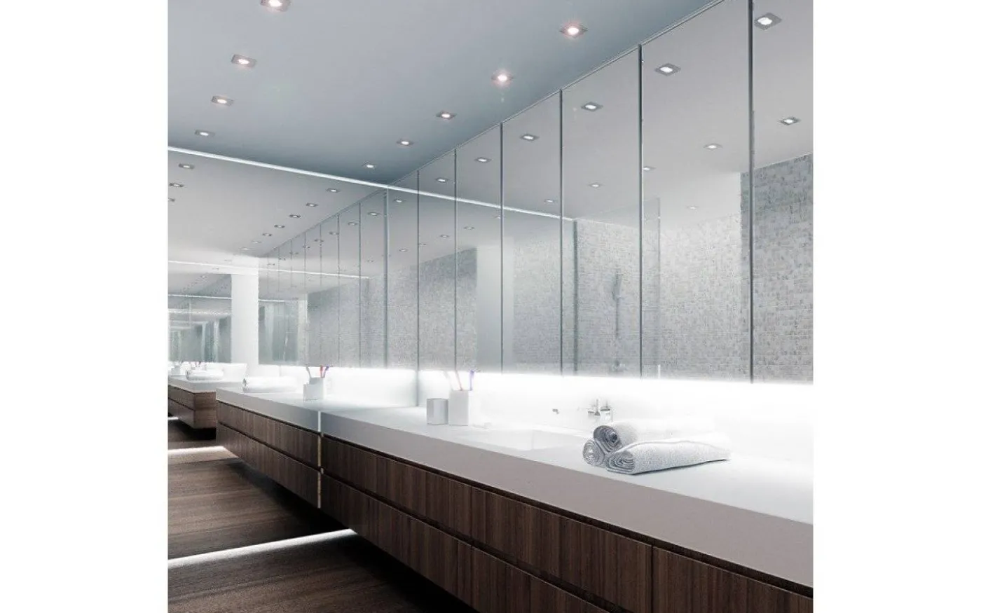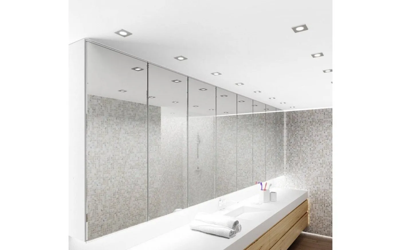 Infälld lampa i metall lämplig i våta miljöer.