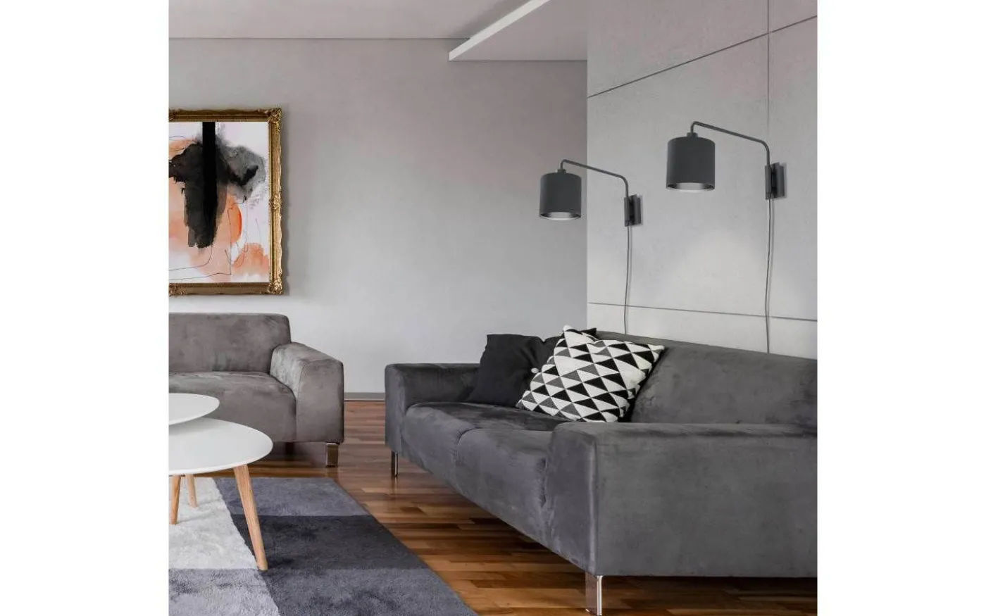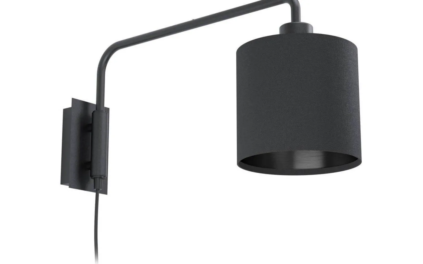 Vägglampan är försedd med svart kabel med stickkontakt och strömbrytare.