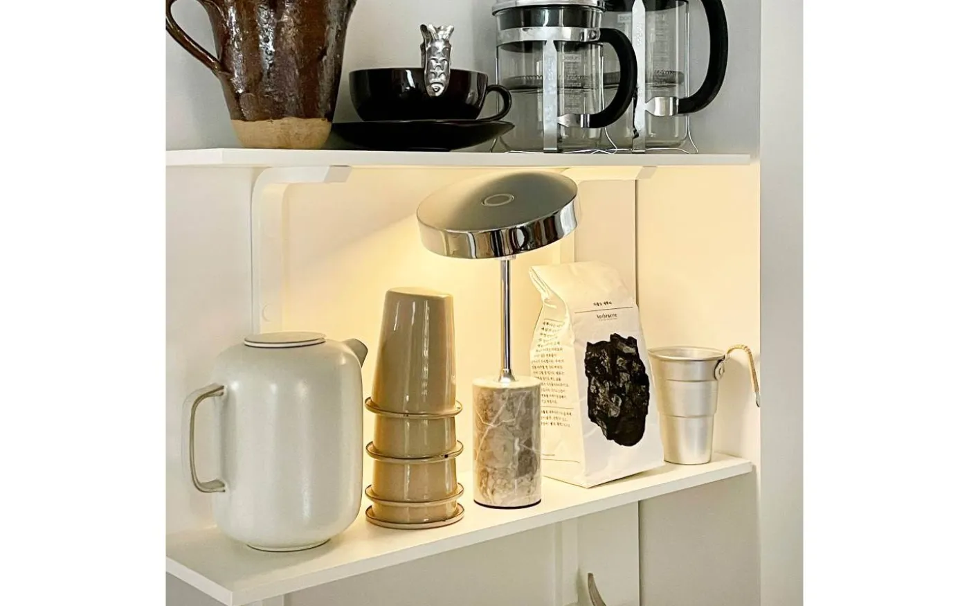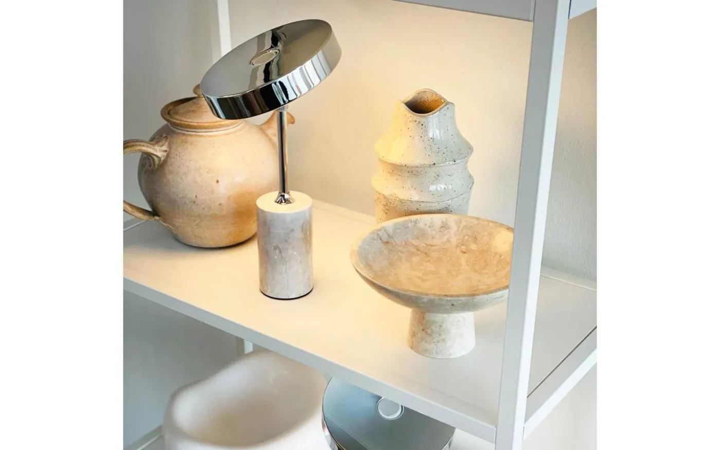 Starlight från välkända Dyberg Larsen är en stilfull, uppladdningsbar bordslampa med solid marmorbas och en härlig kromad metallskärm med integrerat LED. Ljuset kan du enkelt reglera i tre steg med hjälp av strömbrytaren som sitter på lampskärmen.
