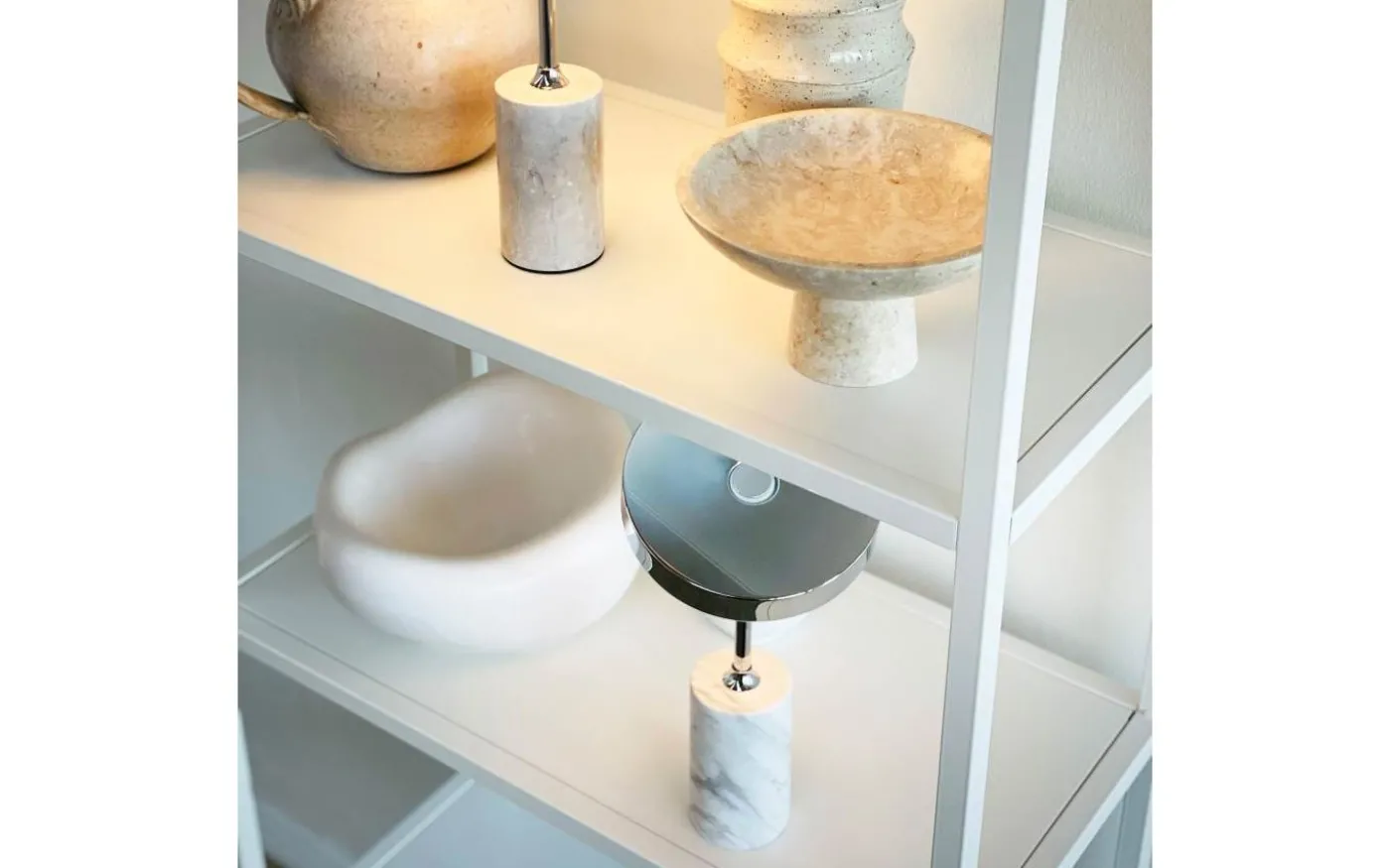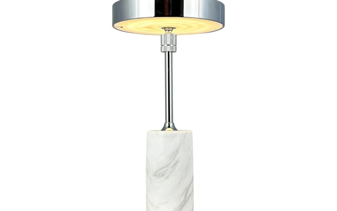 Starlight från välkända Dyberg Larsen är en stilfull, uppladdningsbar bordslampa med solid marmorbas och en härlig kromad metallskärm med integrerat LED. Ljuset kan du enkelt reglera i tre steg med hjälp av strömbrytaren som sitter på lampskärmen.