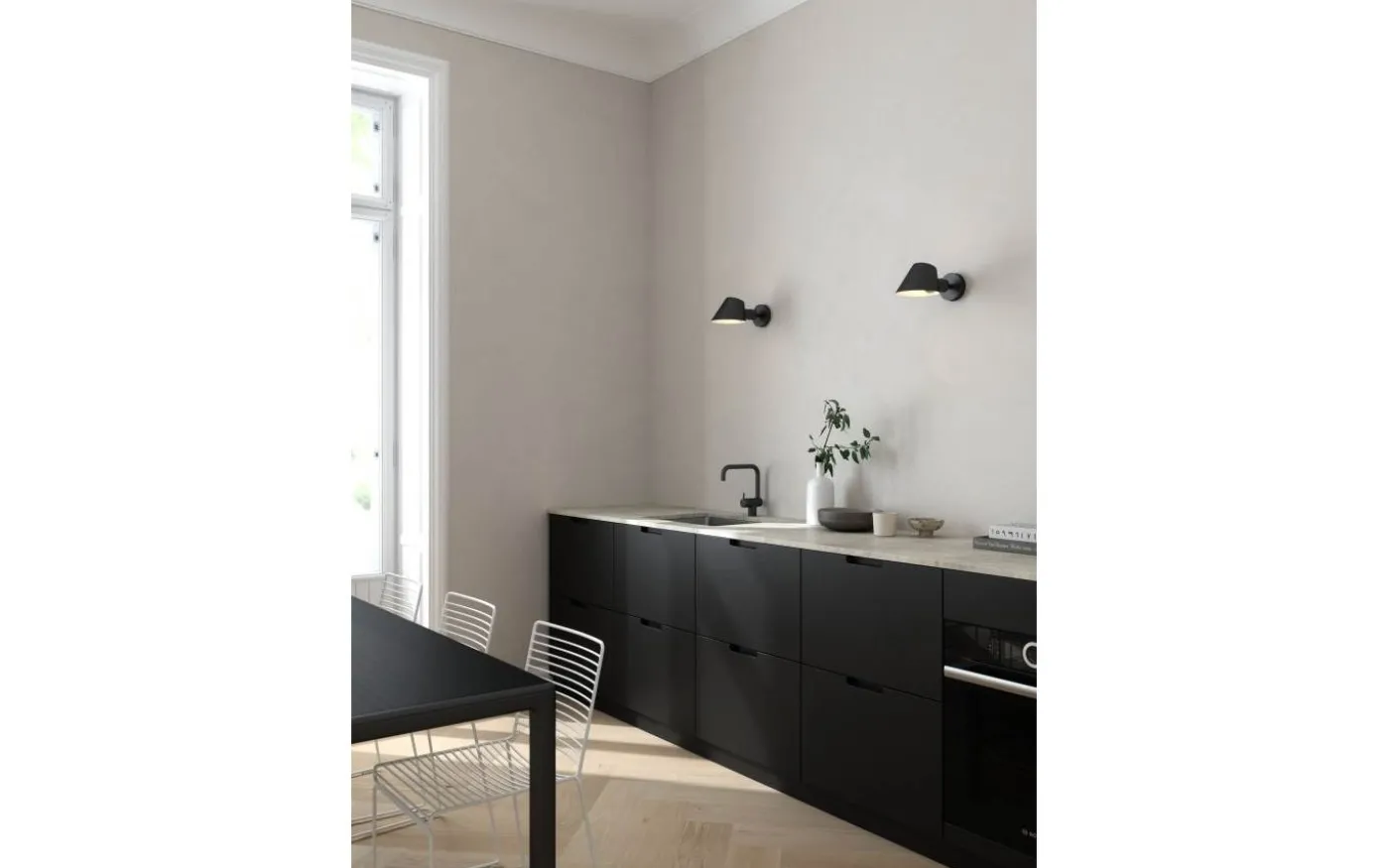 Vägglampan Stay avger ett mjukt, behagligt ljus både uppåt och nedåt – vilket skapar det perfekta ljuset för ditt säng- eller köksbord.