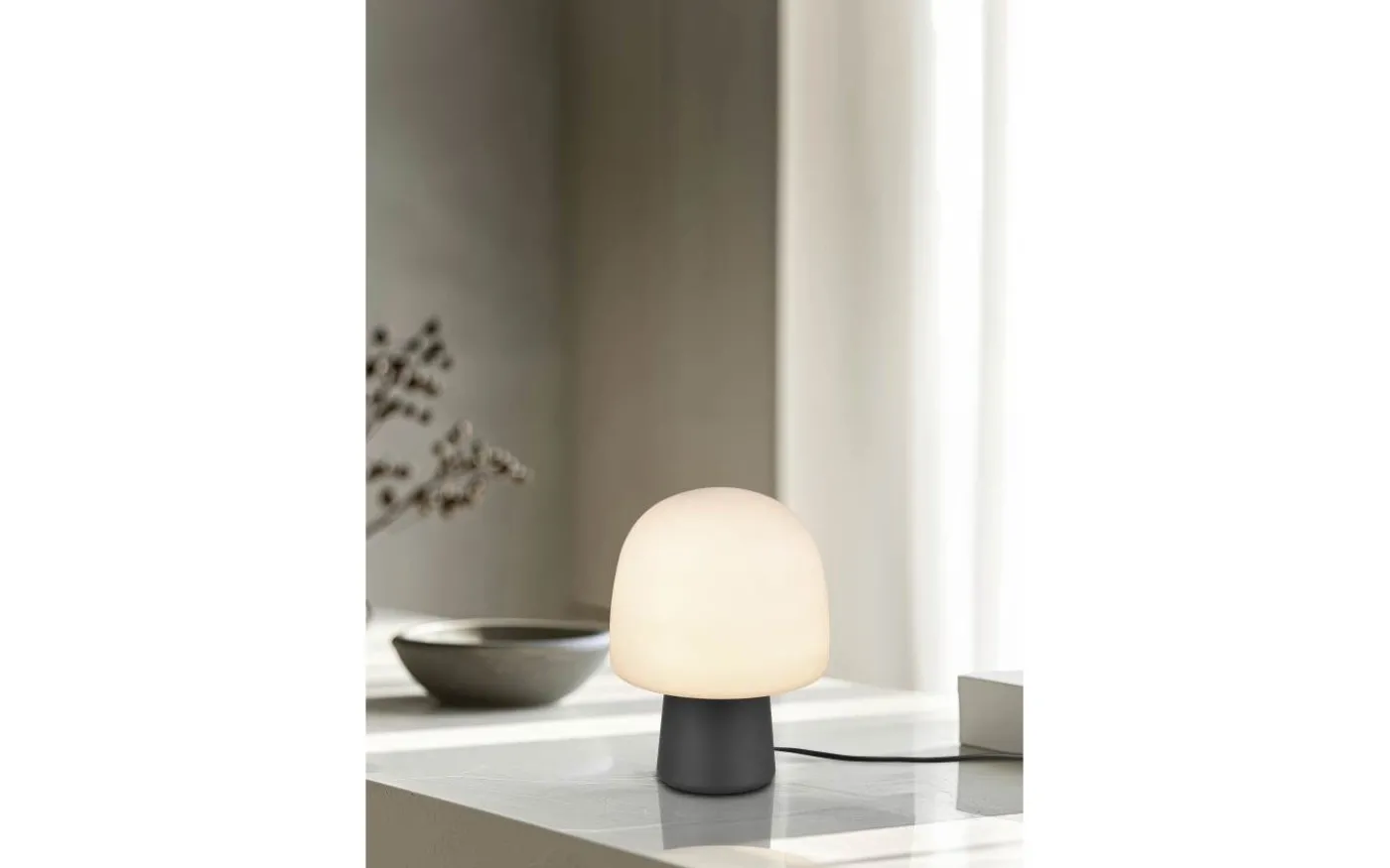 Bordslampan STEEN kombinerar elegant modernitet med en unik design. Dess svampformade silhuett gör den till ett verkligt blickfång i alla rum. Tack vare den praktiska sladdströmbrytaren kan ljuset enkelt tändas och släckas. STEEN är idealisk som ljuskälla på en byrå eller som en dekorativ detalj på ett skänk. Skapa en atmosfärisk atmosfär med denna moderna bordslampa. Den svarta mattbelysta foten harmoniserar perfekt med den taupefärgade glasskärmen och ger ljuset en subtil elegans. För modern och pålitlig belysning rekommenderas en LED-lampa. Den erbjuder hög ljuskvalitet, är mångsidig och övertygar med jämn belysning. Dess långa livslängd och låga värmeutveckling gör den till det perfekta valet för en mängd olika användningsområden. Ljuskälla: exklusivt 1x E14 · max. 10W. Extra information: Kabelbrytare, IP20, Lampa(or) ingår ej