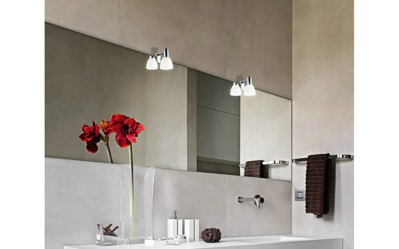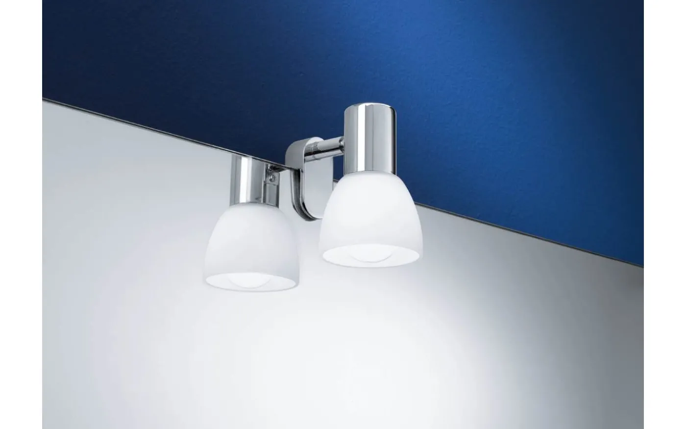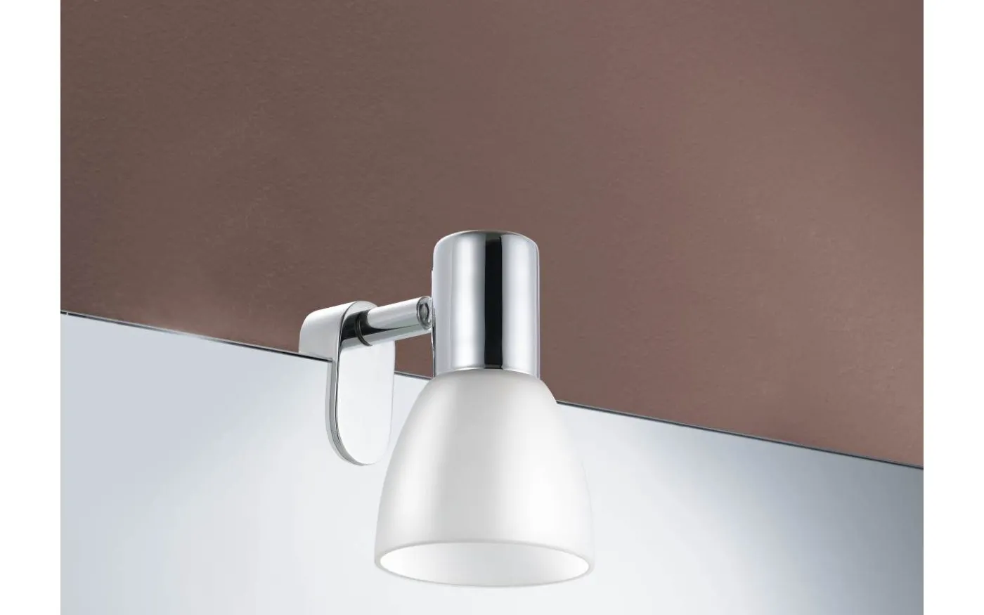 STICKER-spegellampan har en metallstruktur med kromfinish och en vit matt opalglasskärm. Spegellampans fäste kan fästas på spegeln. Spegelljuset smälter samman sömlöst med moderna interiörer och ger stilfull belysning över spegeln i badrummet. Glödlampan ingår inte. Produkten har en E14 lamphållare och kräver en E14 glödlampa.