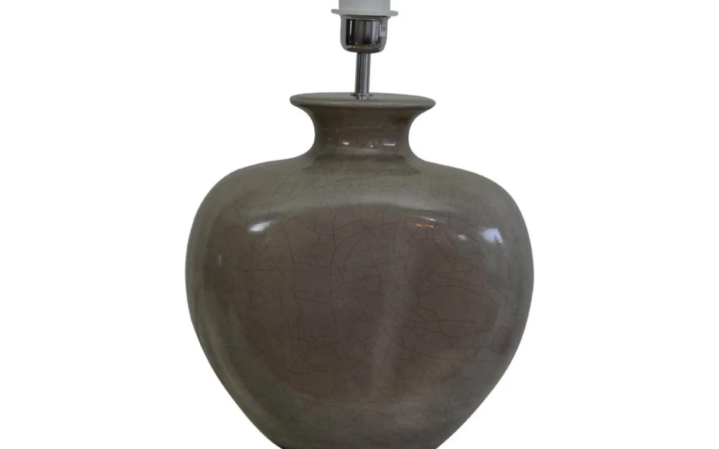 En dekorativ lampfot i serien Stillness med glasyr i nyansen Broken Mud grå. Den runda, mjukt formade siluetten tillsammans med det spruckna mönstret i glasyren ger ett levande och unikt uttryck. Lampfoten är 47 cm hög och passar utmärkt med både enkla och mönstrade lampskärmar, vilket gör den till en mångsidig och elegant detalj i hemmet.