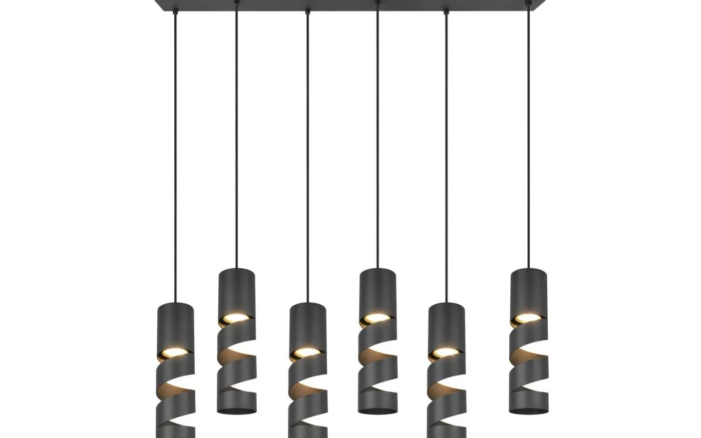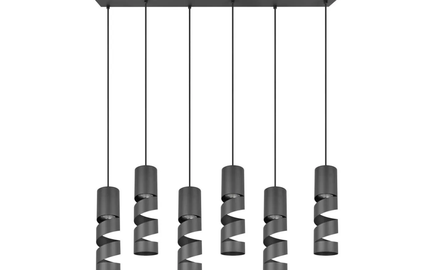 Upptäck pendellampan med sex ljuskällor från STREAM-serien – ett fascinerande mästerverk som påminner om korkskruvarnas eleganta form. Med sin moderna men tidlösa design ger pendellampan STREAM oöverträffad elegans till ditt hem. Skärmarnas smala, cylindriska form gör dem till det perfekta valet för belysning ovanför matbord eller köksbänkar. Med sitt mattsvarta utseende förhöjer den stilfullt alla interiörer och sätter smakfulla accenter. För modern och pålitlig belysning rekommenderas en LED-lampa. Den erbjuder hög ljuskvalitet, är mångsidig och övertygar med jämn belysning. Dess långa livslängd och låga värmeutveckling gör den till det perfekta valet för en mängd olika användningsområden. Ljuskälla: exklusiv 6x GU10 · max. 10W. Extra information: Justerbar i höjd, Takmontering, IP20, Lampa(or) ingår ej