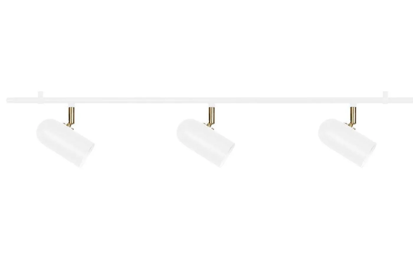 Swan är en funktionell spotlight med tre riktbara lamphuvuden, designad av formgivaren Malin Lundmark för välkända varumärket Globen Lighting. Lampan är gjord i vitlackerad metall med detaljer i borstad mässing. Denna armatur placeras på väggen eller i taket och passar perfekt för att belysa en tavel/fotovägg eller för att lysa upp en bokhylla.