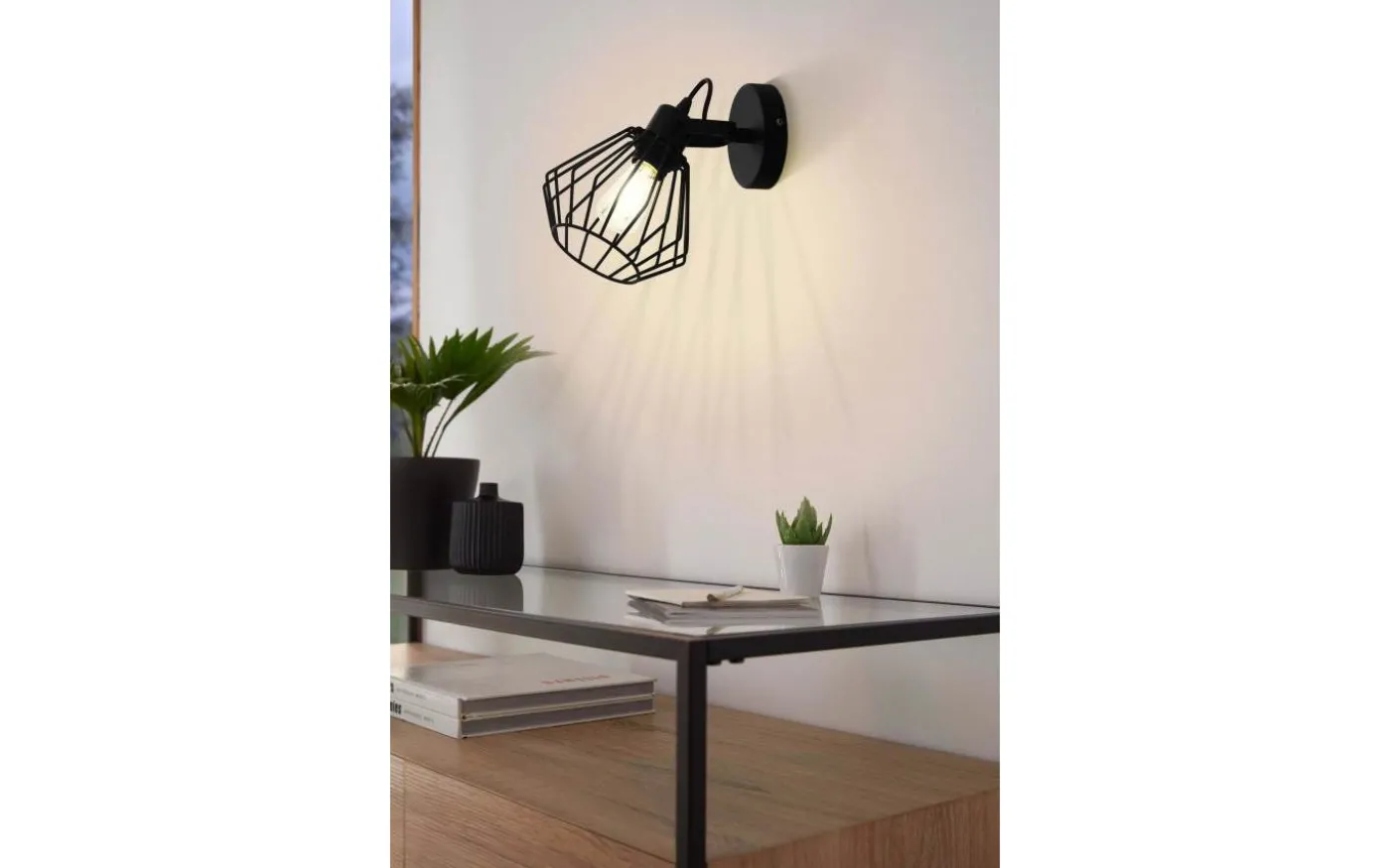 Vägg- och taklampan TABILLANO är gjord av svart metall och har en justerbar diamantformad trådspotlight. Lampskärmen skapar ett fascinerande spel av ljus och skugga så fort ljuset tänds och är den perfekta pricken över i:et för moderna interiörer. Det justerbara lamphuvudet gör att du kan accentuera enskilda delar av rummet, oavsett om det är i köket, vardagsrummet, sovrummet, hallen eller matsalen.
