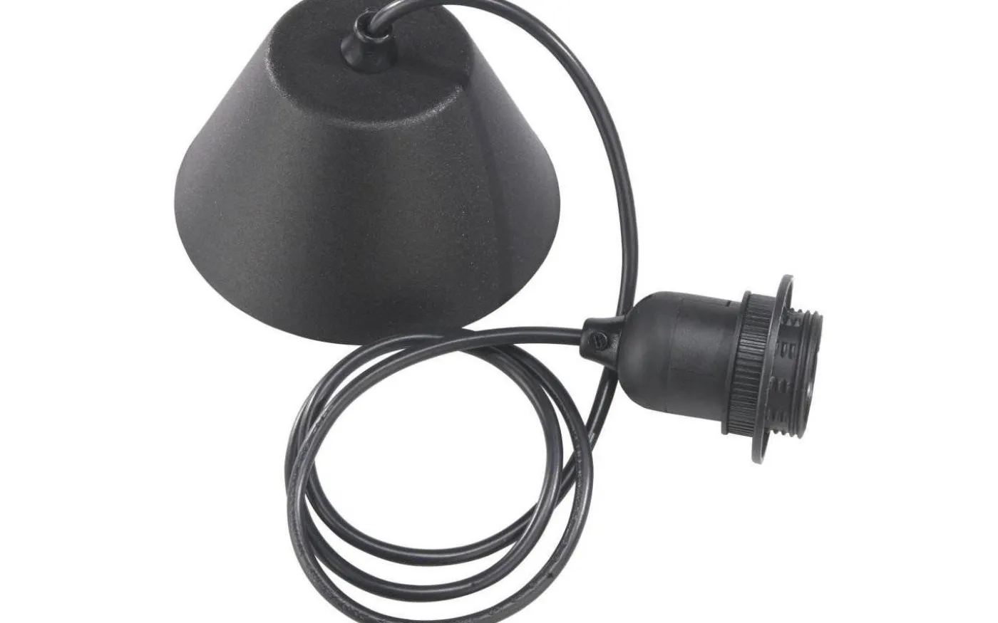 Svart takupphänge som är 1,2 meter lång och har ett E27 ringfäste samt takkopp med kopplingsplint.