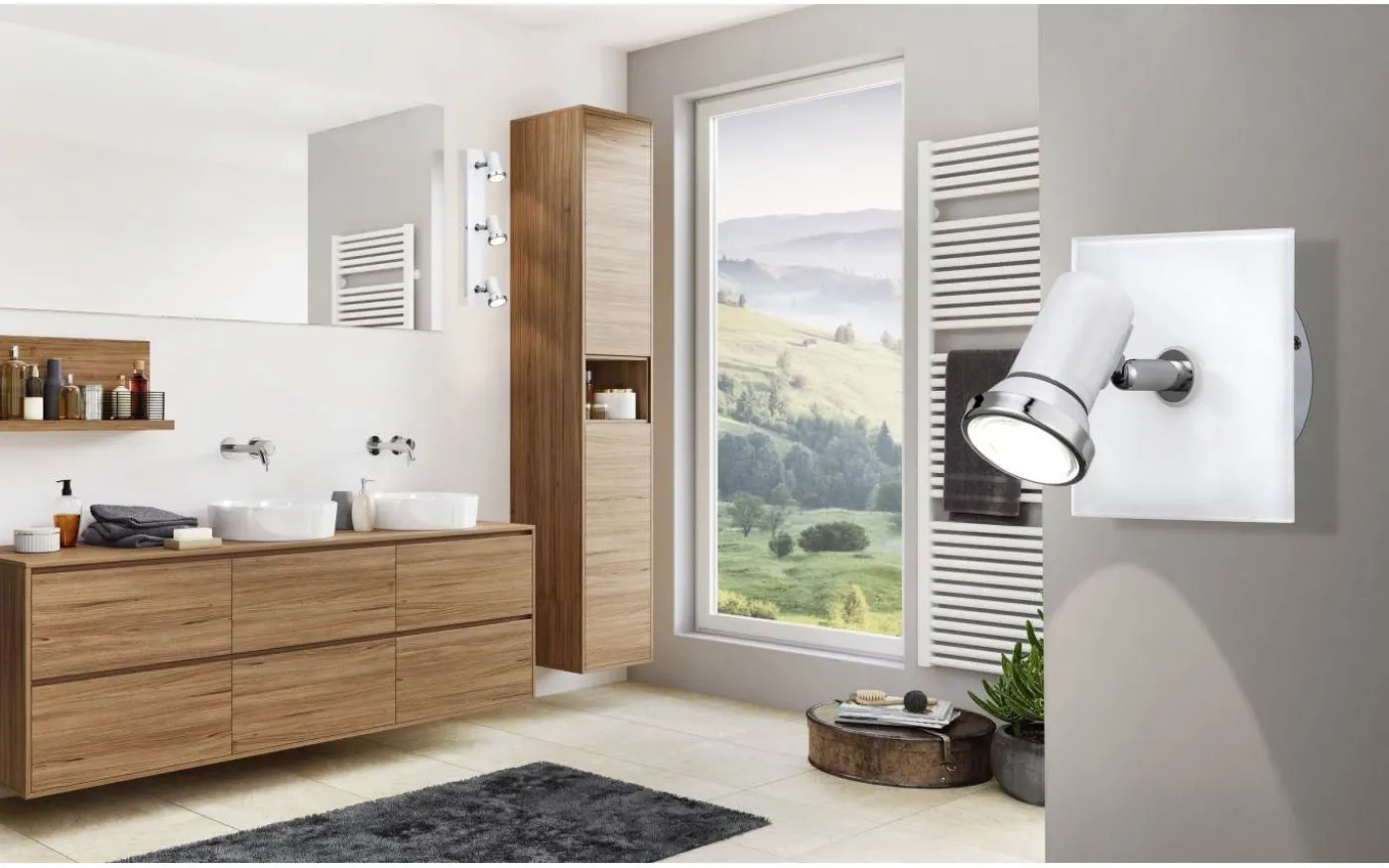 TAMARA 1 LED vägg- och takspotlight har en vit metallfinish, med ett fyrkantigt glastakfäste och en justerbar spotlight. Vägg- och taklampan är lämplig för användning i badrummet på grund av dess IP44-skydd mot stänkvatten. De kromade detaljerna förstärker den högkvalitativa designen. Produkten inkluderar en GU10 LED-glödlampa, som ger ett behagligt varmvitt ljus. Strålkastaren smälter utmärkt in i moderna interiörer och ger stilfull belysning i badrummet.