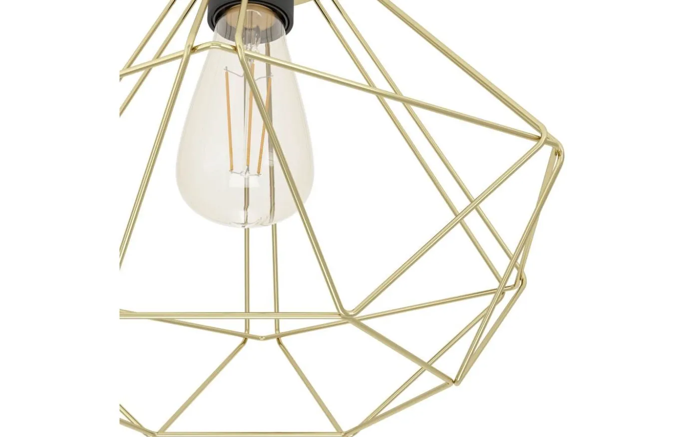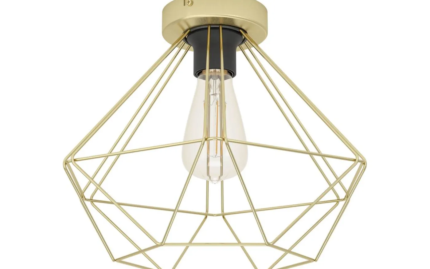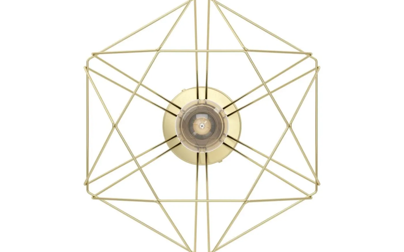 TARBES taklampa har en rund metallfot i borstad mässing med en trådlampskärm av samma färg i en delikat diamantform. När lampan är tänd skapar den ett fascinerande spel av ljus och skugga genom den geometriska designen. Den moderna taklampan ger en snygg belysningslösning för alla utrymmen, oavsett om det är i köket, vardagsrummet, sovrummet, hallen eller matsalen. Den avbildade glödlampan ingår inte. Produkten har en E27 lamphållare och kräver en E27 glödlampa.