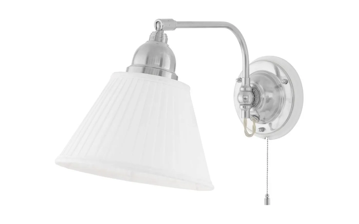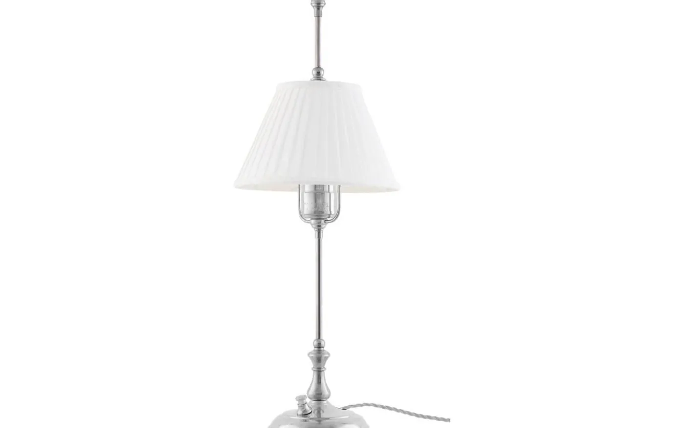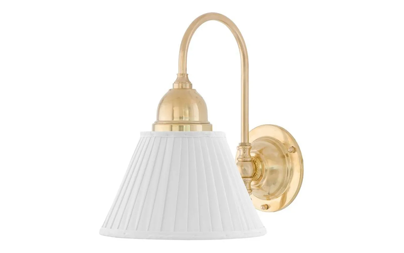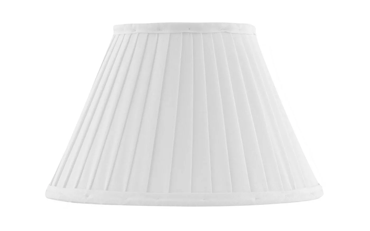 Klassisk textilskärm i veckat bomullstyg med ett ringfäste för fäste på gängad lamphållare eller i den mässingslyra som förkommer i våra bord och golvlampor. Vit bomullstextil 12×20 cm Lyra med 45 mm hål
