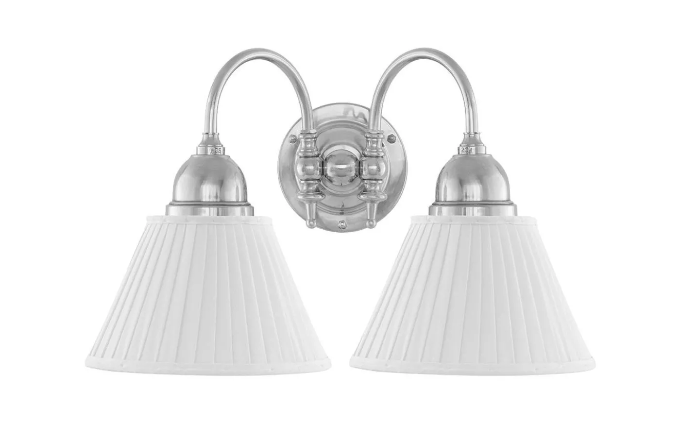 Textilskärmarna från Karlskrona Lampfabrik är tillverkade i veckat bomullstyg som sys upp på en vitlackerad stålställning. De mörkare varianterna, såsom gröna och röda skärmar, är dessutom försedda med ett vitt fodertyg. Stålställningen tillverkas på en liten familjeägd fabrik i norra Polen, medan sömnaden utförs av hemsömmerskor i närområdet kring fabriken.