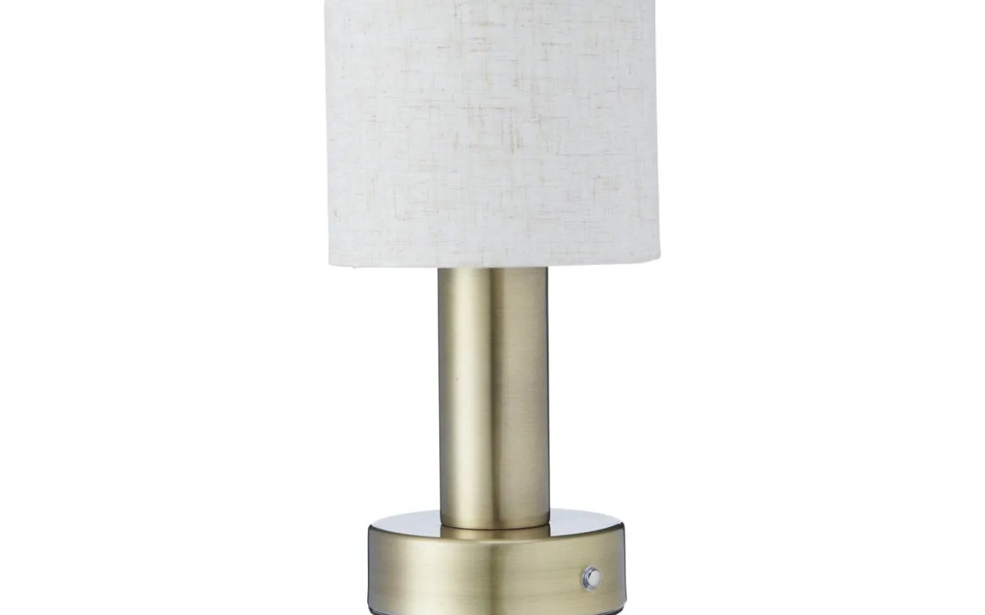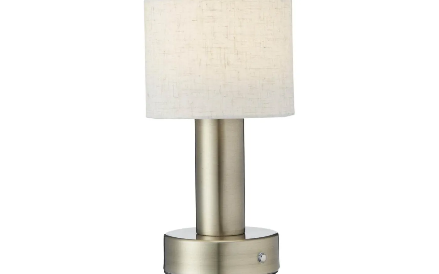 Tiara bordslampa från PR Home är en uppladdningsbar bordslampa tillverkad i lackerad metall med en vacker skärm i linnetyg.