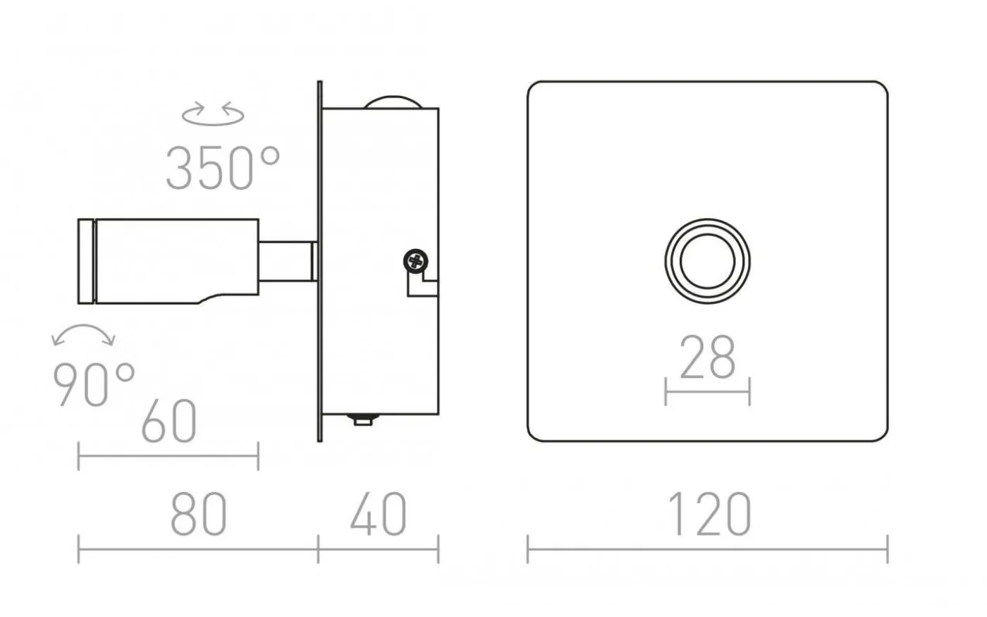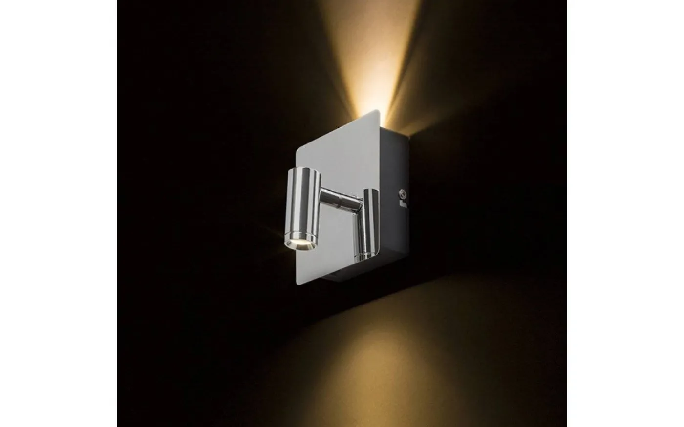 Vägglampa med inbyggda LED-ljuskällor som kan tändas individuellt, med varsin brytare på den kantiga basen.