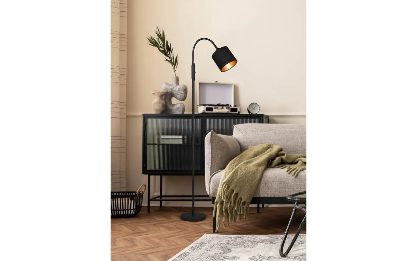 TOMMY-armaturserien står för ett hemtrevligt ljus, då textilskärmar ökar komfortfaktorn och frammanar en mysig atmosfär. Samtidigt skapar de tydliga formerna en modern och enkel stil som kan användas och kombineras på många olika sätt. I svart matt/guld avrundar golvlampan moderna inredningsstilar optimalt. För energibesparande belysning rekommenderas att använda en LED-lampa. Dessa är ett optimalt alternativ till konventionella halogenlampor och står för hög ljuskvalitet och energibesparingar på upp till 80 %. Dessutom hjälper LED-lampor dig att dra nytta av lång livslängd, låg värmeutveckling och samtidigt skydda miljön. Ljuskälla: exklusiv 1x E14 · max. 40W. Extra information: Flexibel, IP20, Lampa(or) ingår ej, Strömbrytare