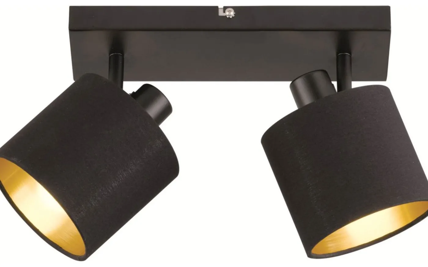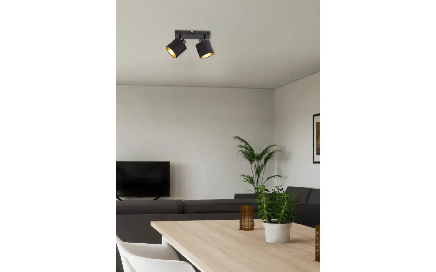 Spotlighterna i TOMMY-serien ger mysig belysning, då textilskärmar ökar komfortfaktorn och frammanar en mysig atmosfär. Samtidigt frammanar de tydliga formerna en modern och enkel stil som kan användas och kombineras på en mängd olika sätt. Spotlighten med två ljuskällor mäter 28×18 cm och kan användas som kompletterande eller orienteringslampa samt för små bostadsutrymmen. De vridbara huvudena kan också justeras för att avsiktligt framhäva enskilda områden. Lampan är tillverkad av mattsvart metall och kompletteras av två tygskärmar i den moderna färgkombinationen svart och guld. Kombinationen skapar snygga ljusaccenter och ger bostadsutrymmen en extraordinär välbefinnandeeffekt. För energibesparande belysning rekommenderas att använda en LED-lampa. Dessa är ett optimalt alternativ till konventionella halogenlampor och står för hög ljuskvalitet och energibesparingar på upp till 80 %. Dessutom hjälper LED-lampor dig att dra nytta av lång livslängd, låg värmeutveckling och samtidigt skydda miljön. Ljuskälla: exklusiv 2x E14 · max. 28W. Extra information: IP20, Lampa(or) ingår ej, Vägg- och takmontering