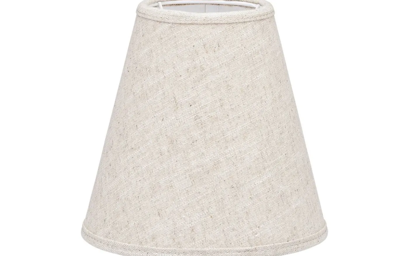 Toppringsskärmen med ett E14-ringfäste från PR Home. Denna lampskärm är tillverkad i linnetyg mede vit insida och matchande kantband i ovan-/ och underkant.