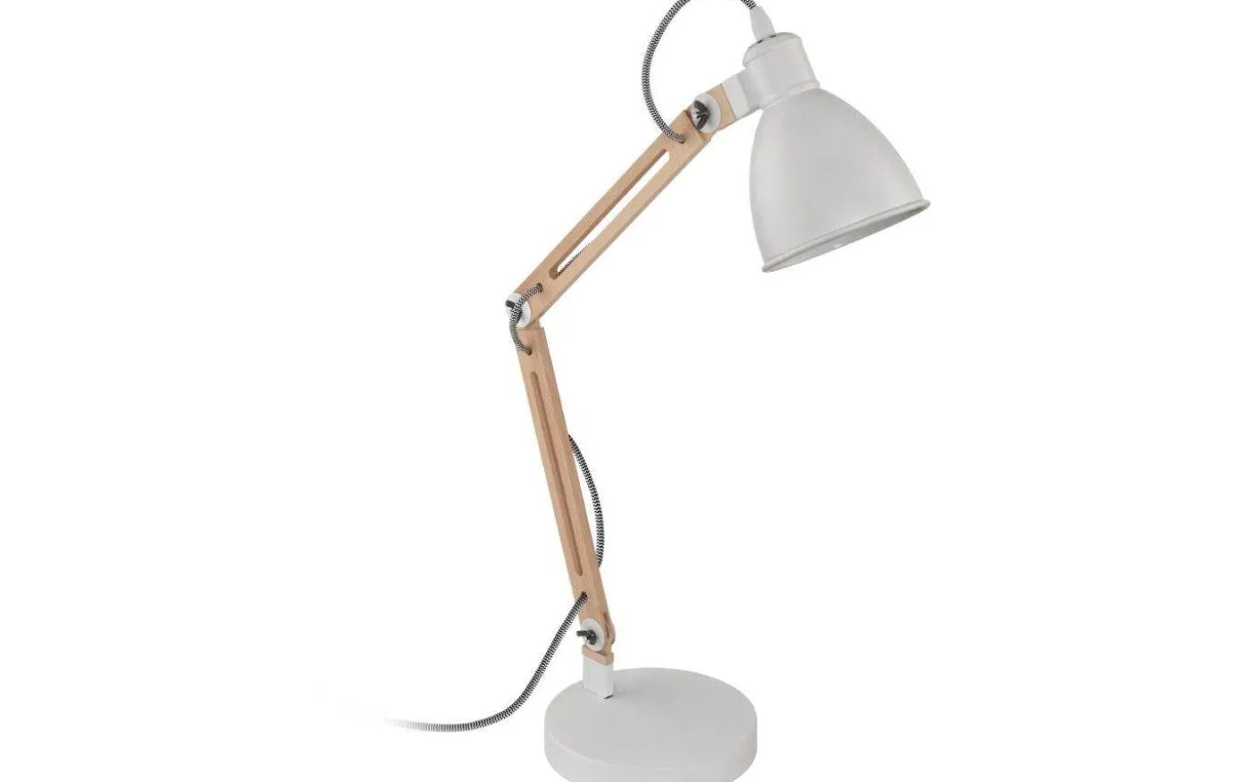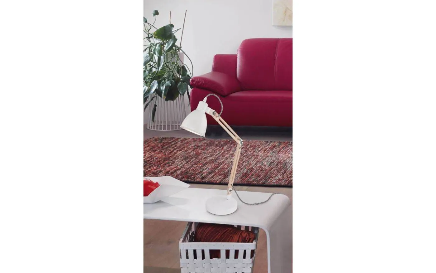 Fina bordslampan Torona från Eglo är en tuff bordslampa i trä med bas och skärm i stål av vit finish. Bordslampans arm har reglerbara leder så att du kan kan justera och ställa lampan i det läge du önskar.